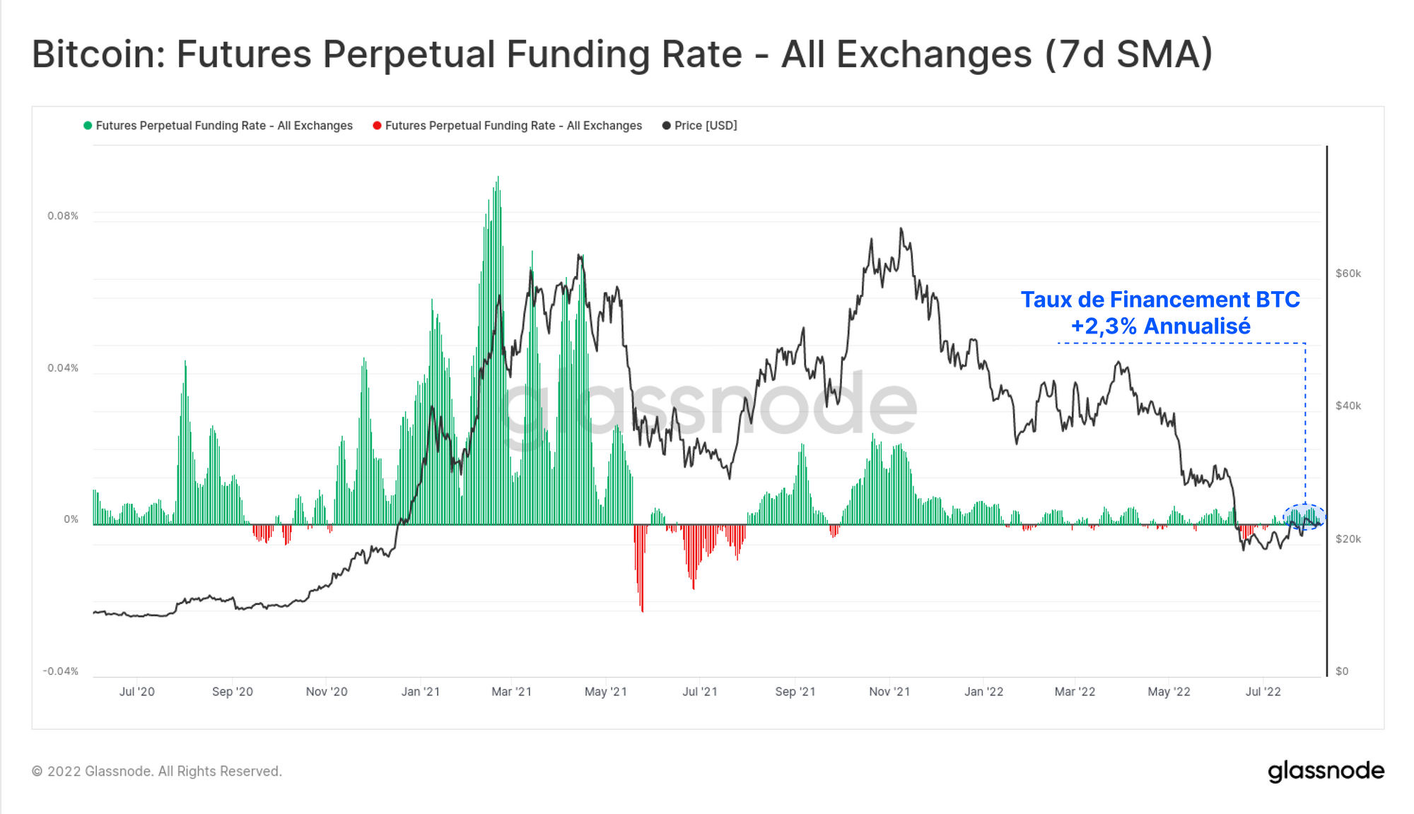 Étant donné l'augmentation à grande échelle de l'intérêt ouvert (sur une échelle relative), cela peut indiquer que les traders sont de plus en plus disposés à prendre une exposition au prix du bitcoin après les deux événements majeurs de capitulation en mai et juin.
