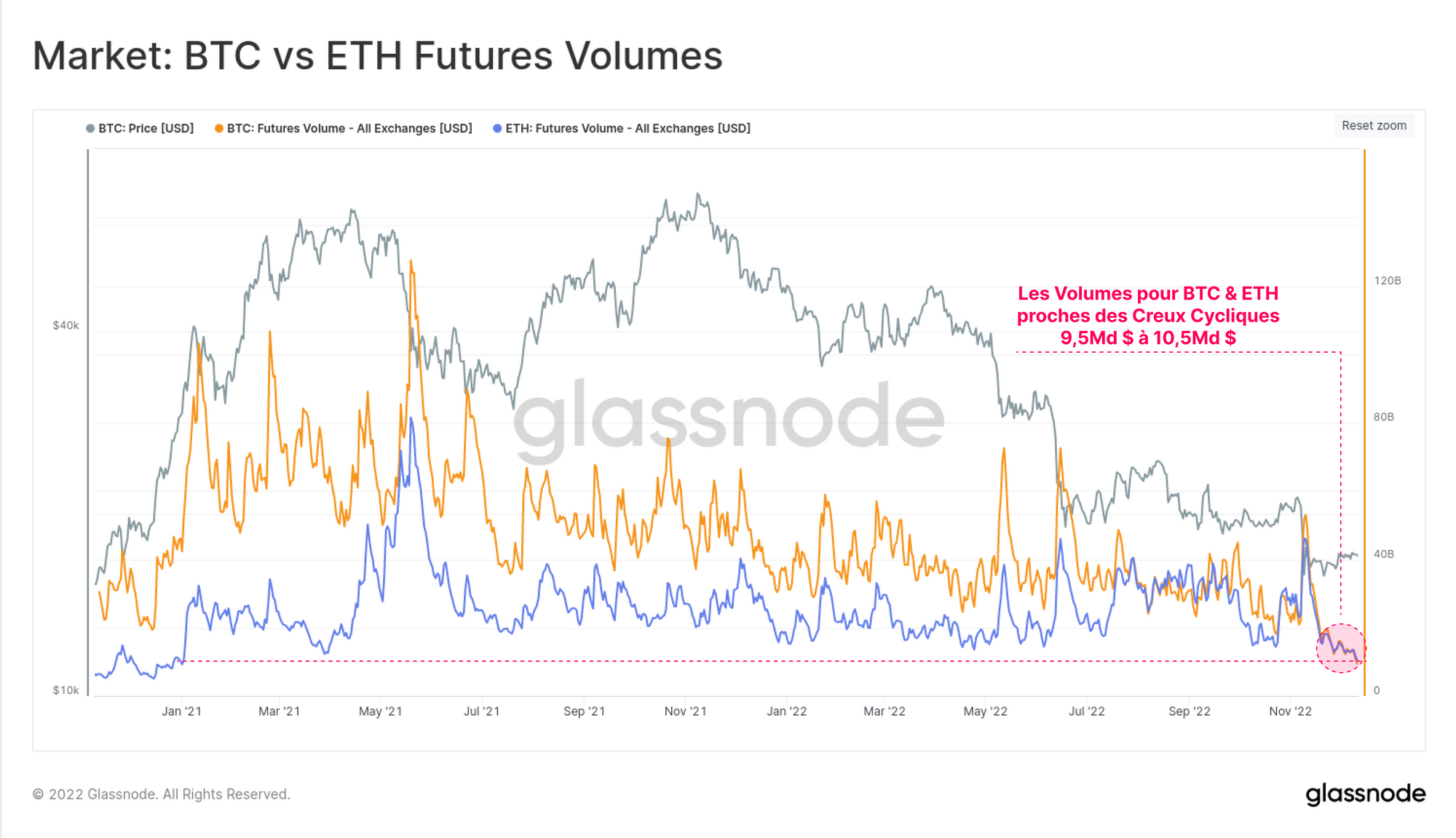L'année 2022 a été difficile, et elle a conduit la volatilité et les volumes à des plus bas niveaux pluriannuels, alors que la liquidité et les spéculateurs se sont retirés. Avec le départ des spéculateurs, l'offre des détenteurs à long terme a atteint un nouvel ATH, et les investisseurs semblent intervenir en augmentant leurs achats à chaque baisse du prix.