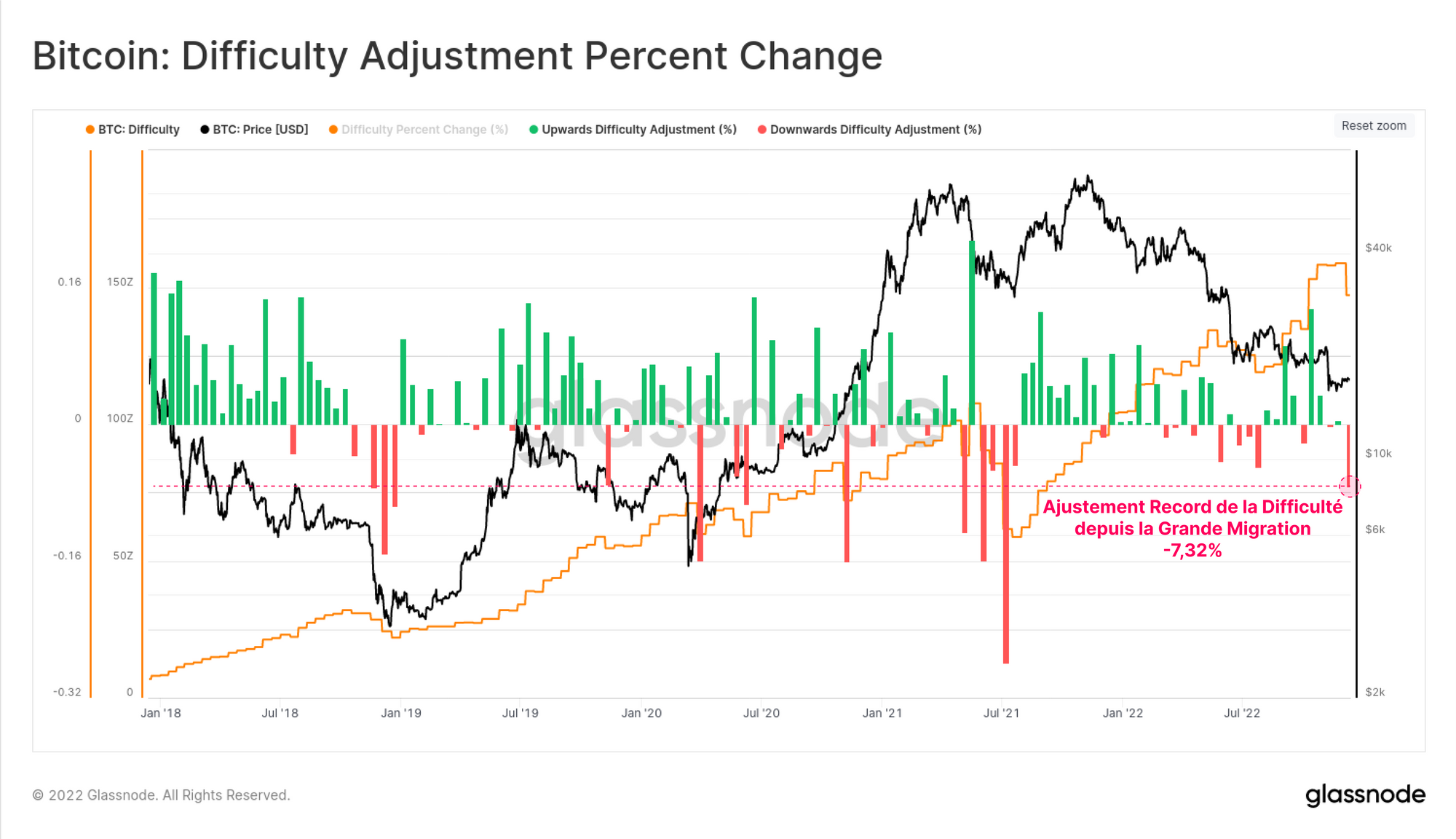 La semaine dernière a vu le plus grand ajustement à la baisse de la difficulté depuis la grande migration des mineurs en juillet 2021.