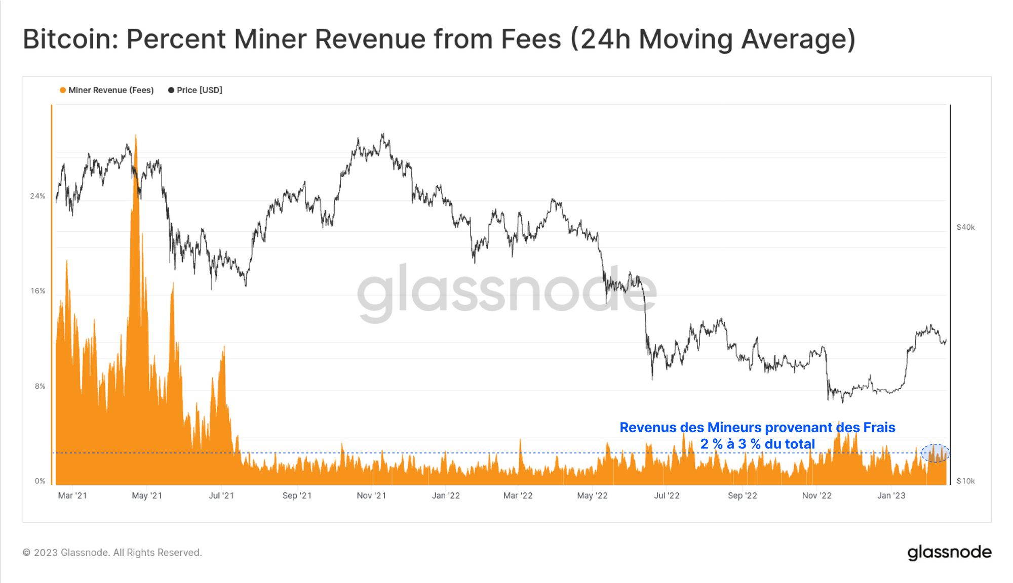 En effet, la proportion du revenu total des mineurs provenant des frais oscille entre 2 et 3 %, ce qui est loin des 8 % et plus observés avant la vente de mai 2021.