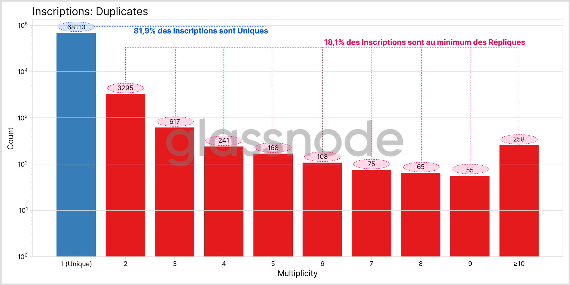 Ensuite, nous pouvons analyser le degré d'unicité des Inscriptions en évaluant la distribution des Inscriptions dupliquées.