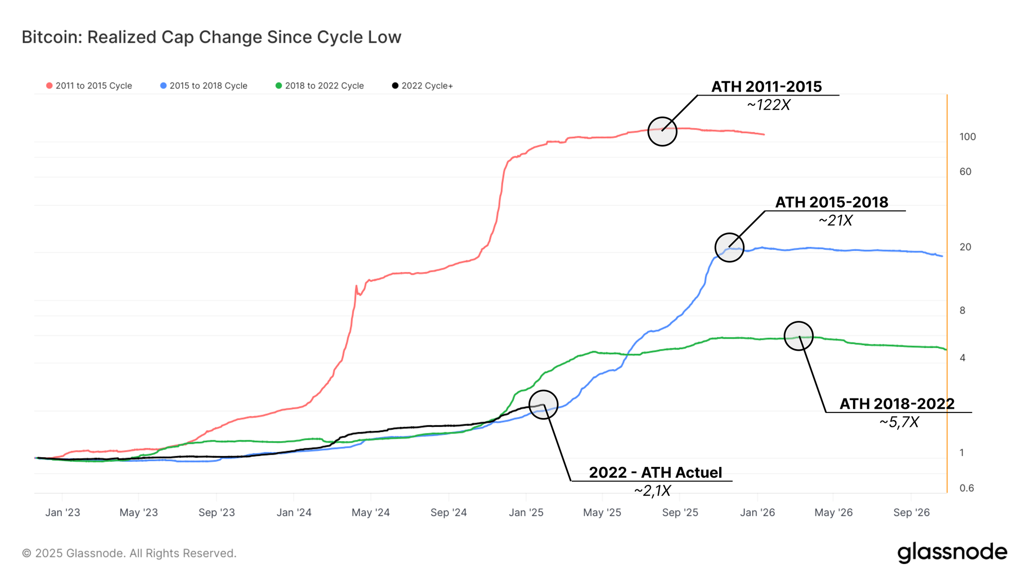 Le rallye du BTC reflète un marché qui arrive à maturité avec une croissance cyclique globale réduite, des baisses modérées et une expansion progressive de la capitalisation réalisée.