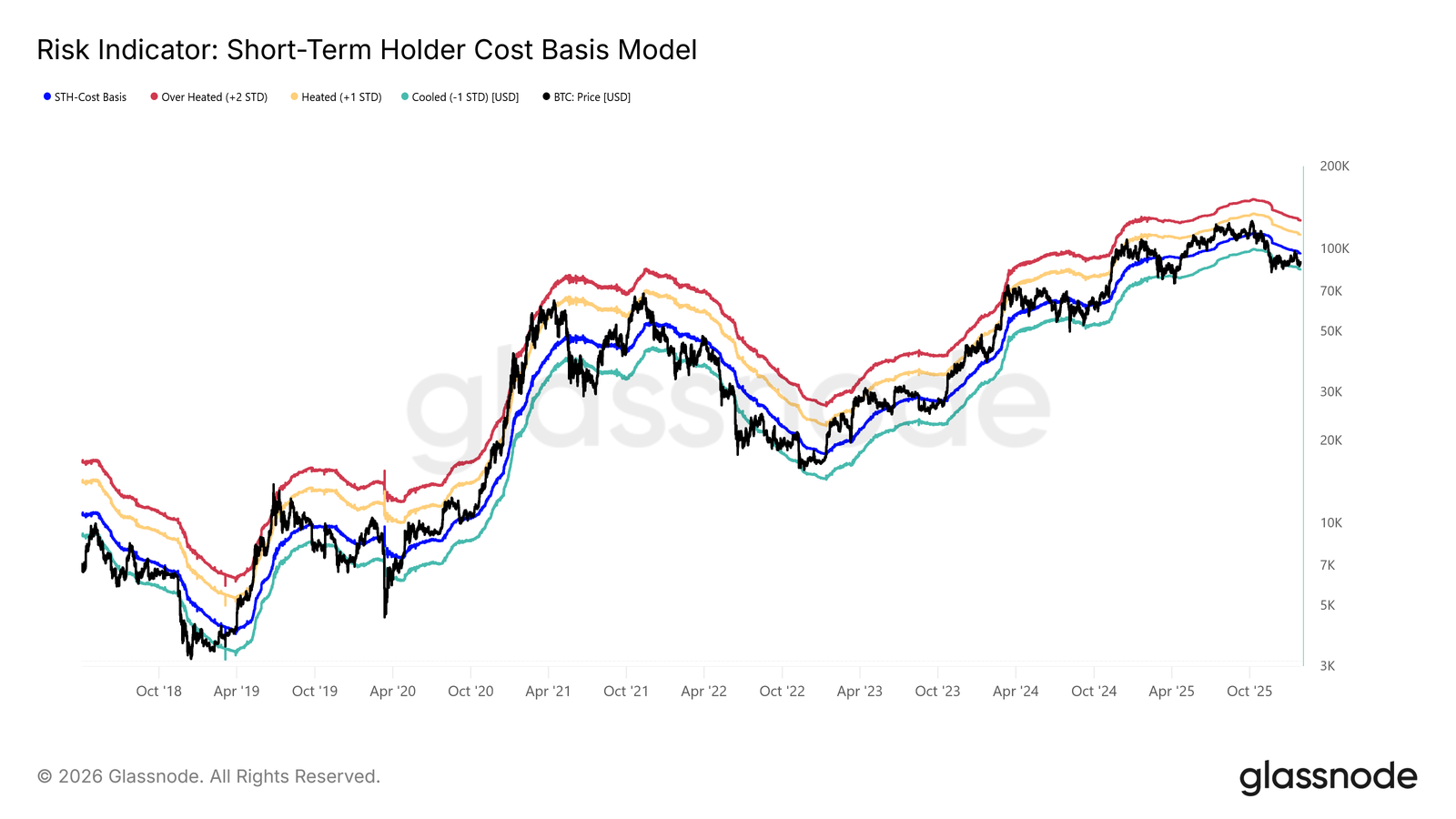 Si les prix ne parviennent pas à se maintenir aux niveaux de soutien indiqués, à savoir la bande d'écart type de -1 du modèle de coût de base des détenteurs à court terme et la moyenne réelle du marché, cette pression pourrait déclencher une nouvelle réalisation de pertes de la part des détenteurs à long terme, ce qui ajouterait au risque de baisse à moyen terme.