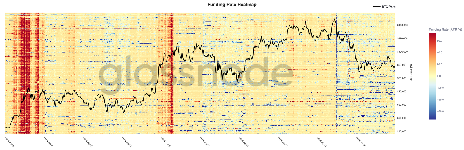 Les conditions de financement perpétuel restent largement modérées sur l'ensemble des marchés, la majorité des positions restant proches de la neutralité malgré une volatilité élevée des prix. Cela suggère que l'effet de levier a été éliminé et que les positions sont désormais plus équilibrées, ni les positions longues ni les positions courtes ne payant de manière constante une prime significative pour maintenir leur exposition.