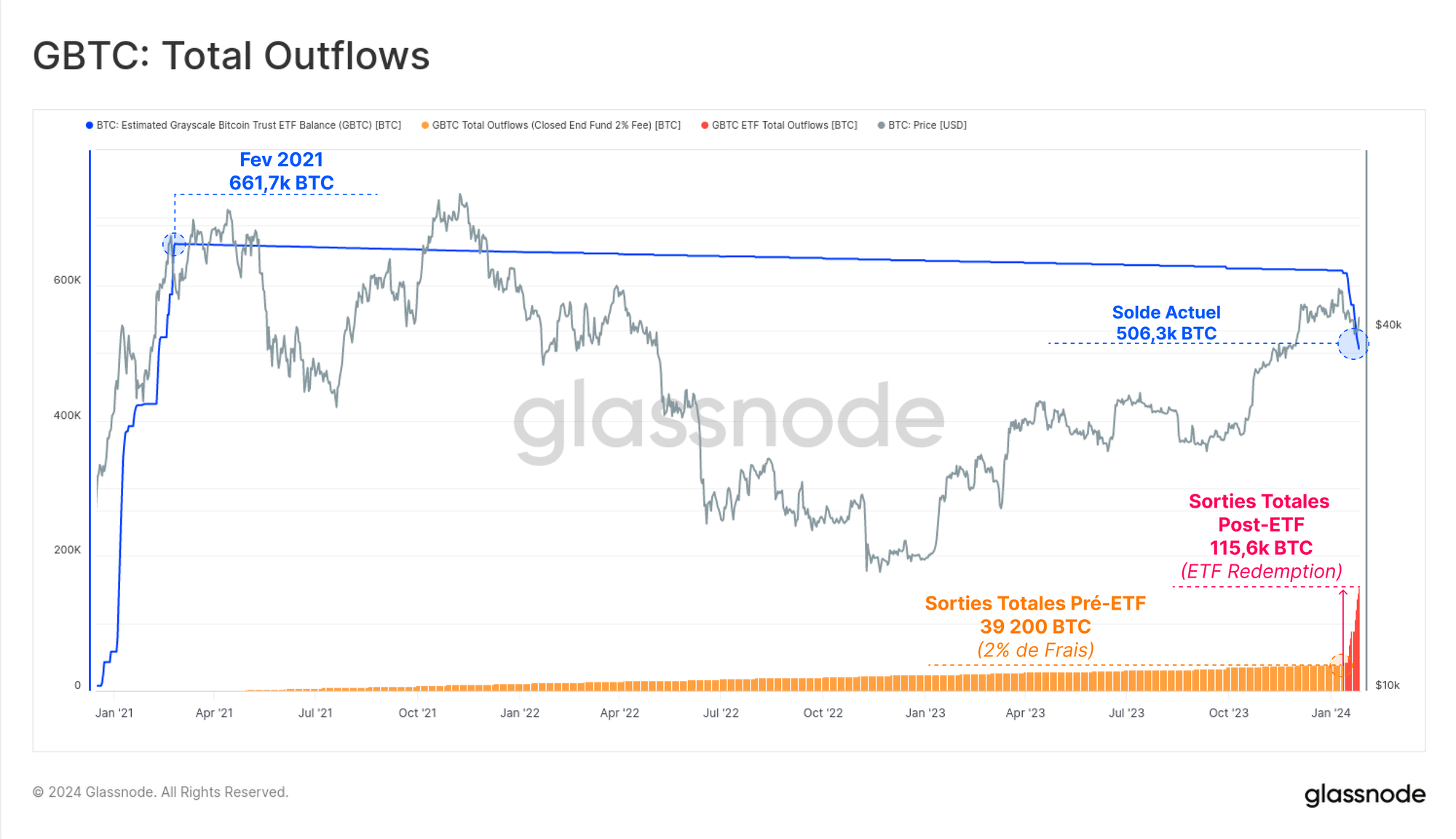 Environ 115,6 millions de BTC ont été retirés de l'ETF du GBTC depuis la conversion, ce qui a créé des vents contraires sur le marché.