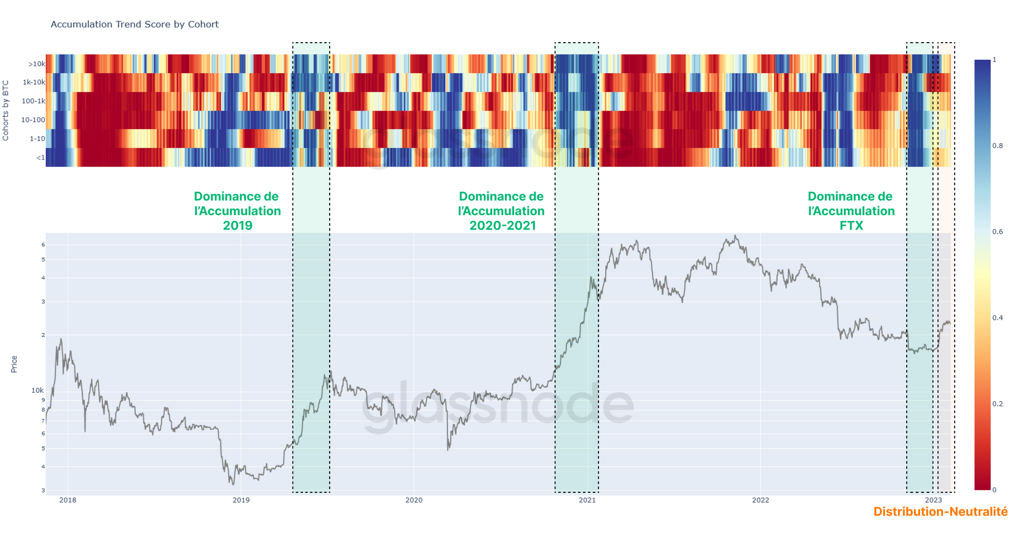Par conséquent, la durabilité du rallye actuel dépendra dans une certaine mesure de la poursuite de l'accumulation de ces grandes entités (🟢 A), ce qui permettra au score de tendance d'accumulation de progresser à nouveau vers une valeur de 1,0.