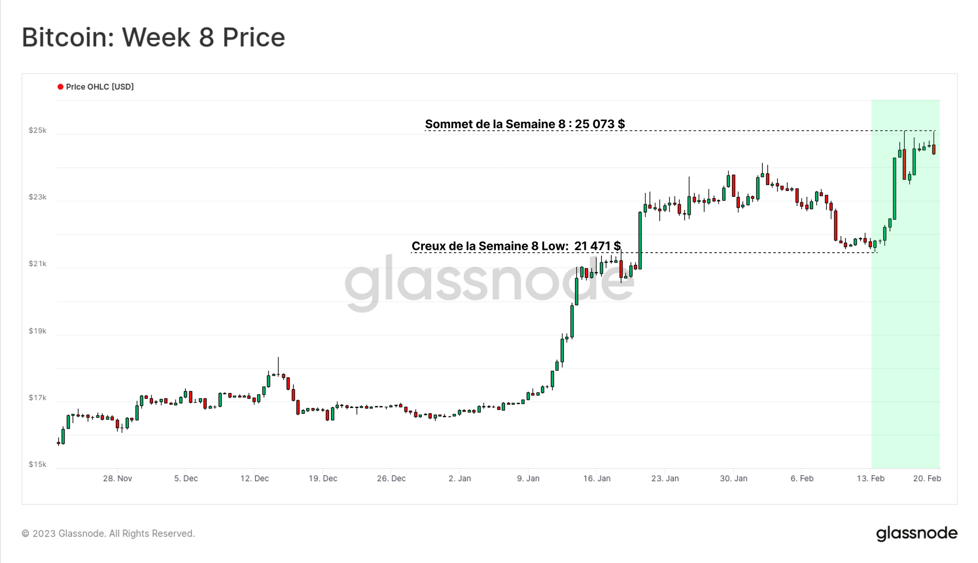 Le bitcoin a connu une autre semaine de forte performance des prix, récupérant la totalité de la correction de la semaine dernière, et atteignant plus de 25 000 $.
