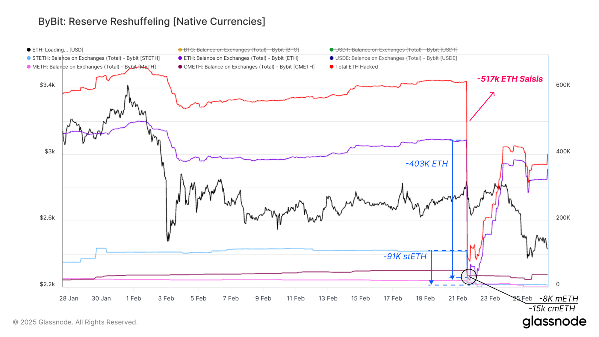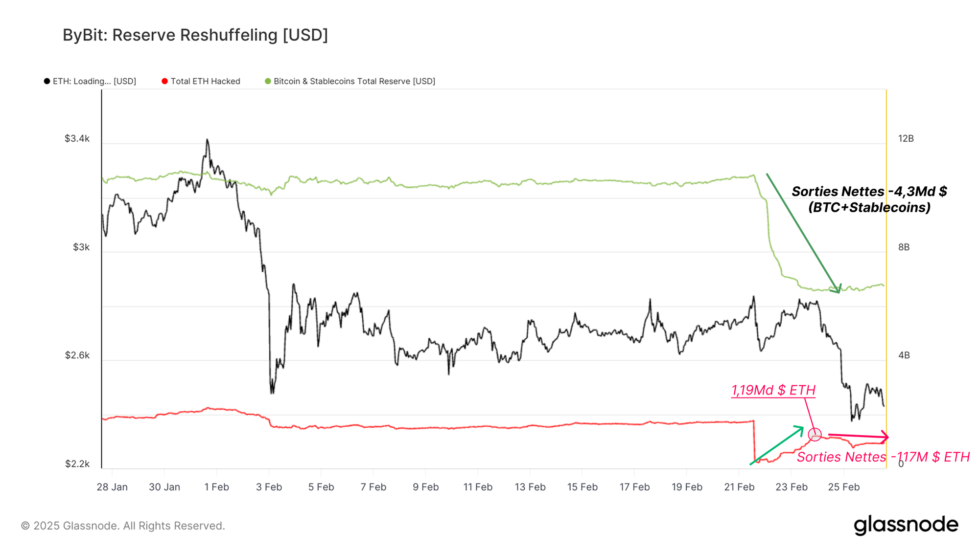 Après le piratage, le marché a réagi par une volatilité accrue et des retraits en panique, ce qui a entraîné une baisse significative des réserves de Bybit, les utilisateurs s'étant précipités pour récupérer leurs actifs.