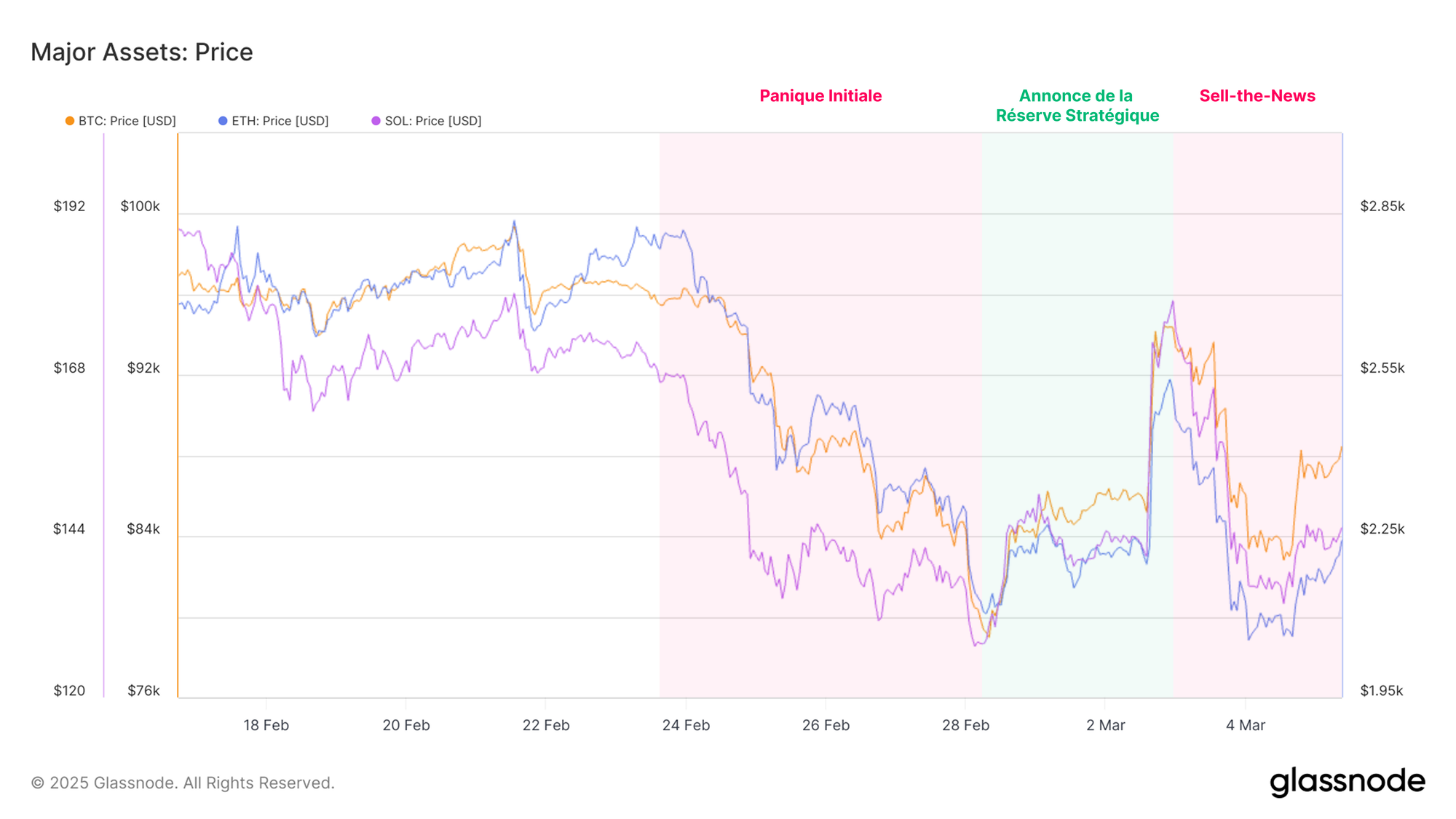 Le contexte du marché cypto a connu une évolution des prix en dents de scie et une volatilité locale intense. La correction a été amplifié par un environnement économique incertain et par la spéculation liée à la création d'une réserve stratégique crypto aux États-Unis.