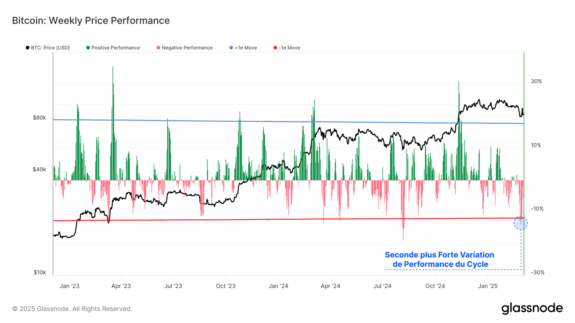 Bien que le BTC ait mieux résisté par rapport à d'autres actifs majeurs, la récente liquidation a tout de même été la deuxième plus forte baisse hebdomadaire de ce cycle.