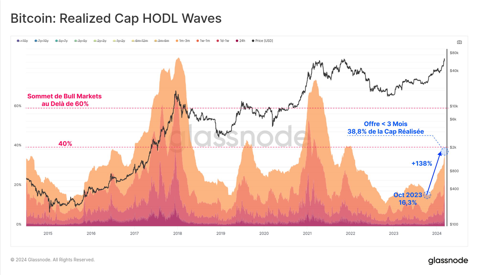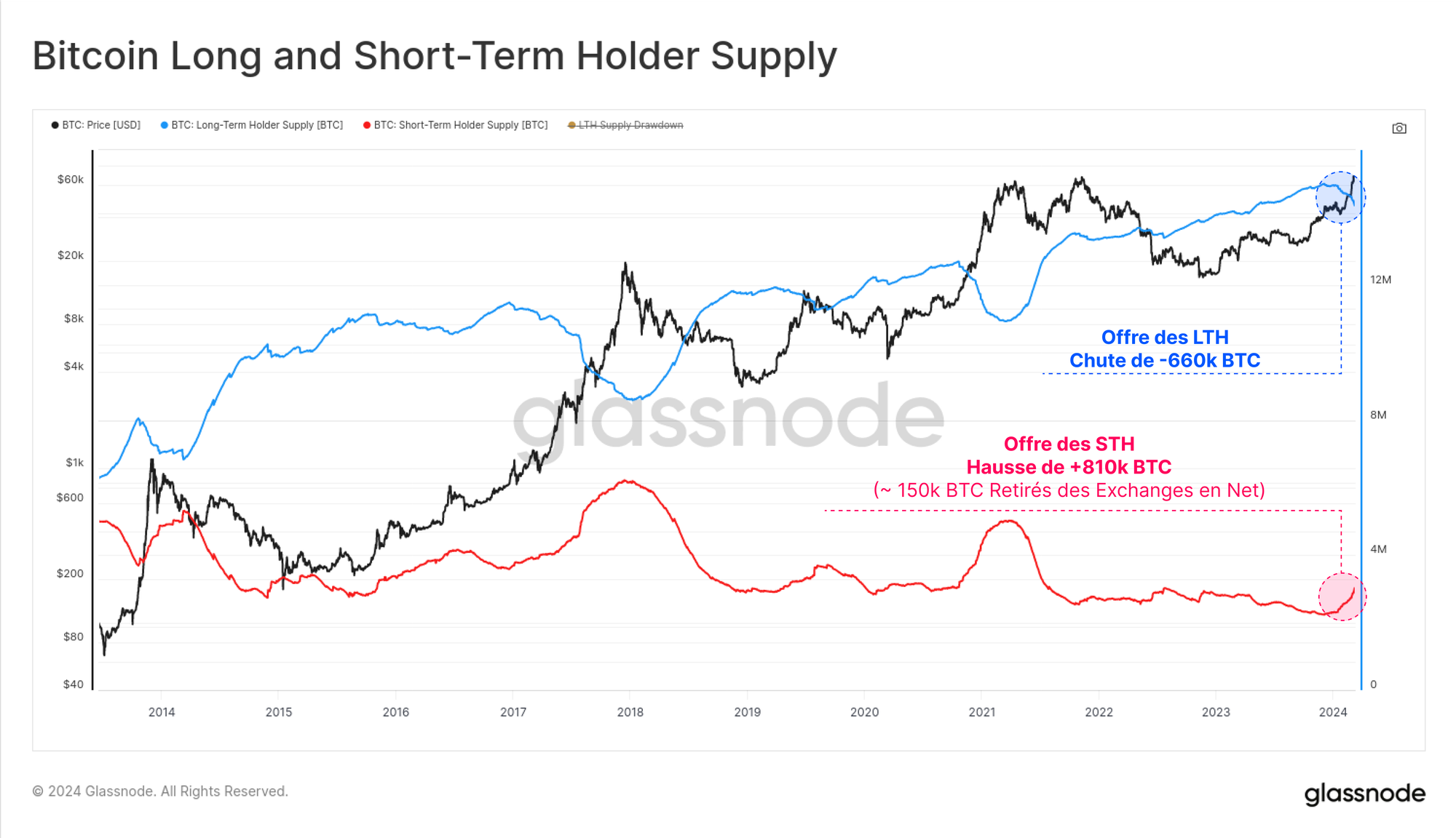 À l'inverse, l'offre des STH tend à atteindre un maximum autour du sommet du cycle, augmentant de plus de 83 % par rapport à son niveau le plus bas.