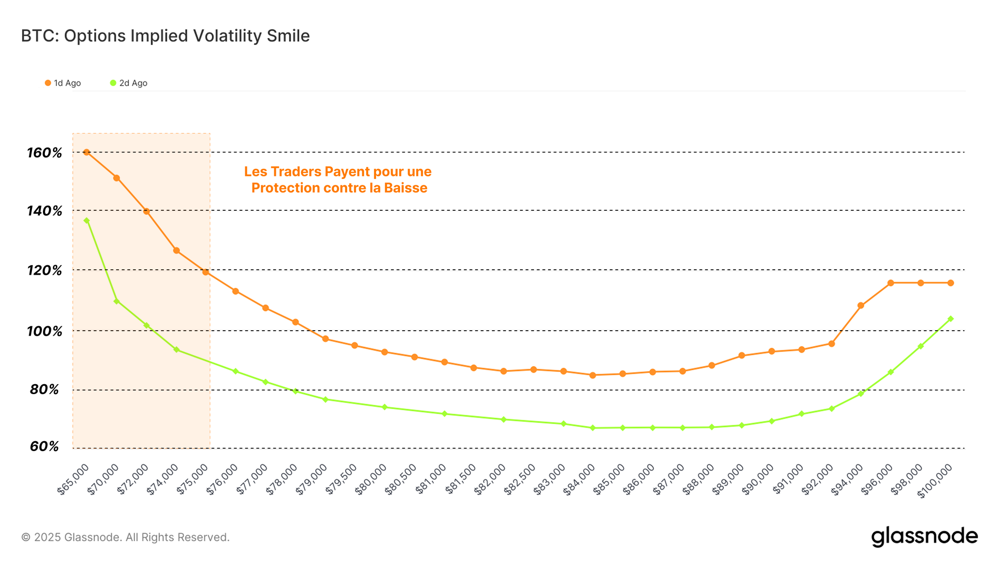 Nous pouvons également observer ce phénomène via l'Options 25 Delta Skew, qui évalue la différence de volatilité implicite pour les options de vente et les options d'achat ayant le même delta.