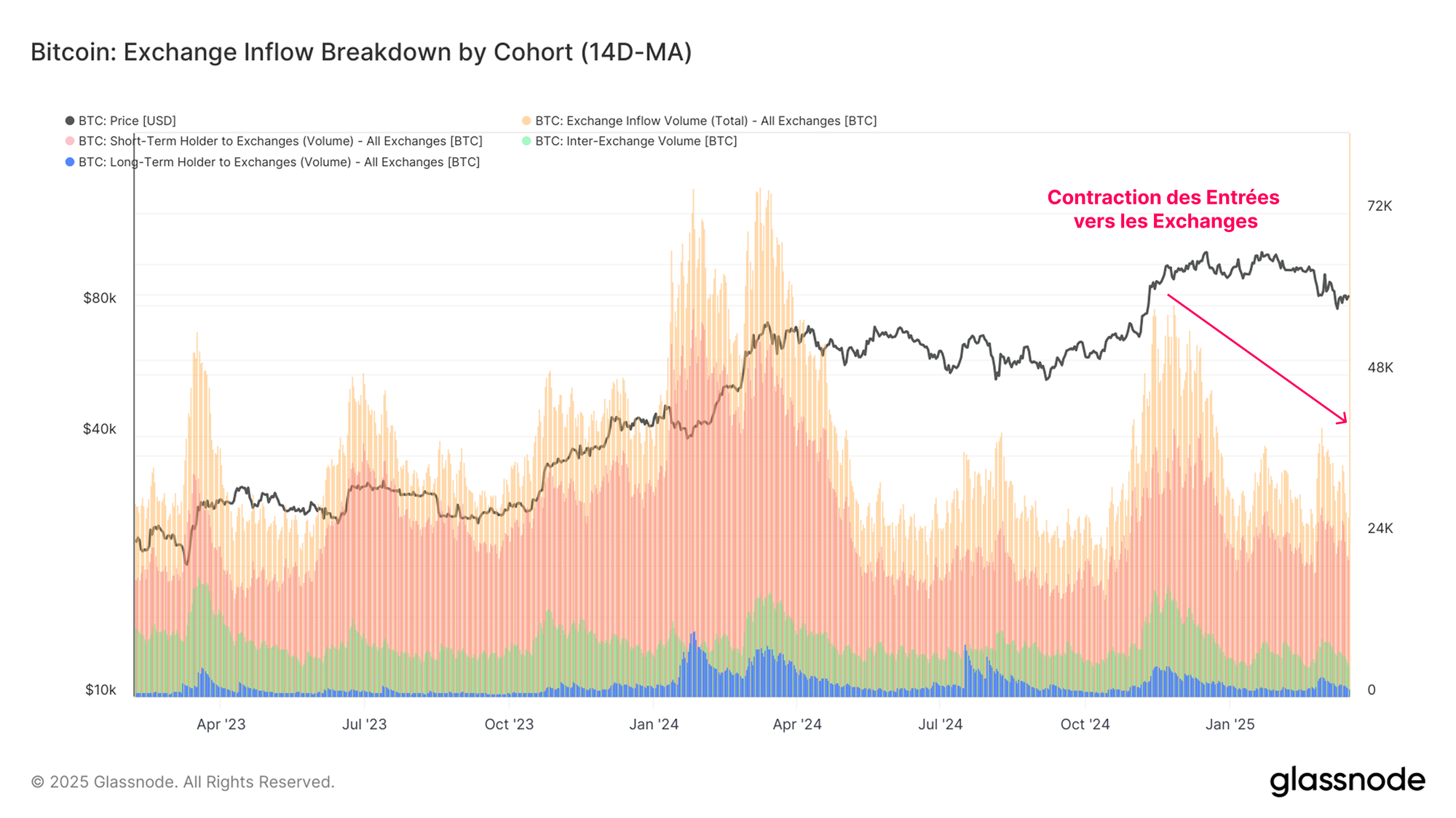 - L'activité des investisseurs à long terme reste modérée, avec une baisse notable de leur pression de vente. Cette cohorte détient encore un volume relativement important de capital à ce stade du cycle, ce qui crée une dynamique intéressante pour l'avenir.