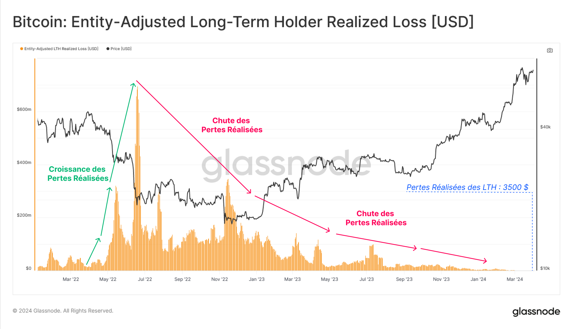 Pour illustrer ce point, nous pouvons voir que les pertes réalisées par les LTH se sont réduites à seulement 3 500 dollars par jour, par rapport aux 114 millions de dollars réalisés par les STH au cours de la récente correction.