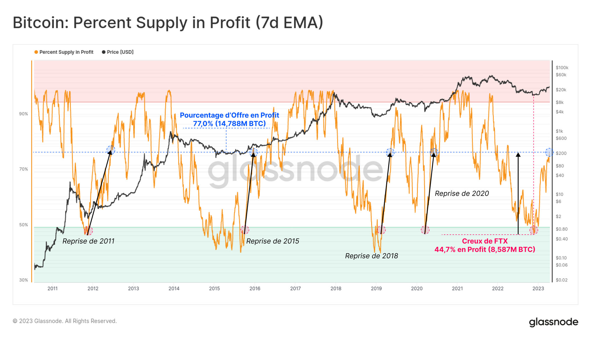La forte performance du marché en 2023 contraste fortement avec celle de 2022 et suggère qu'un changement de régime est en cours. Dans ce rapport, nous explorerons plusieurs indicateurs on-chain qui soutiennent cette thèse et aident à évaluer si une reprise robuste est en cours.