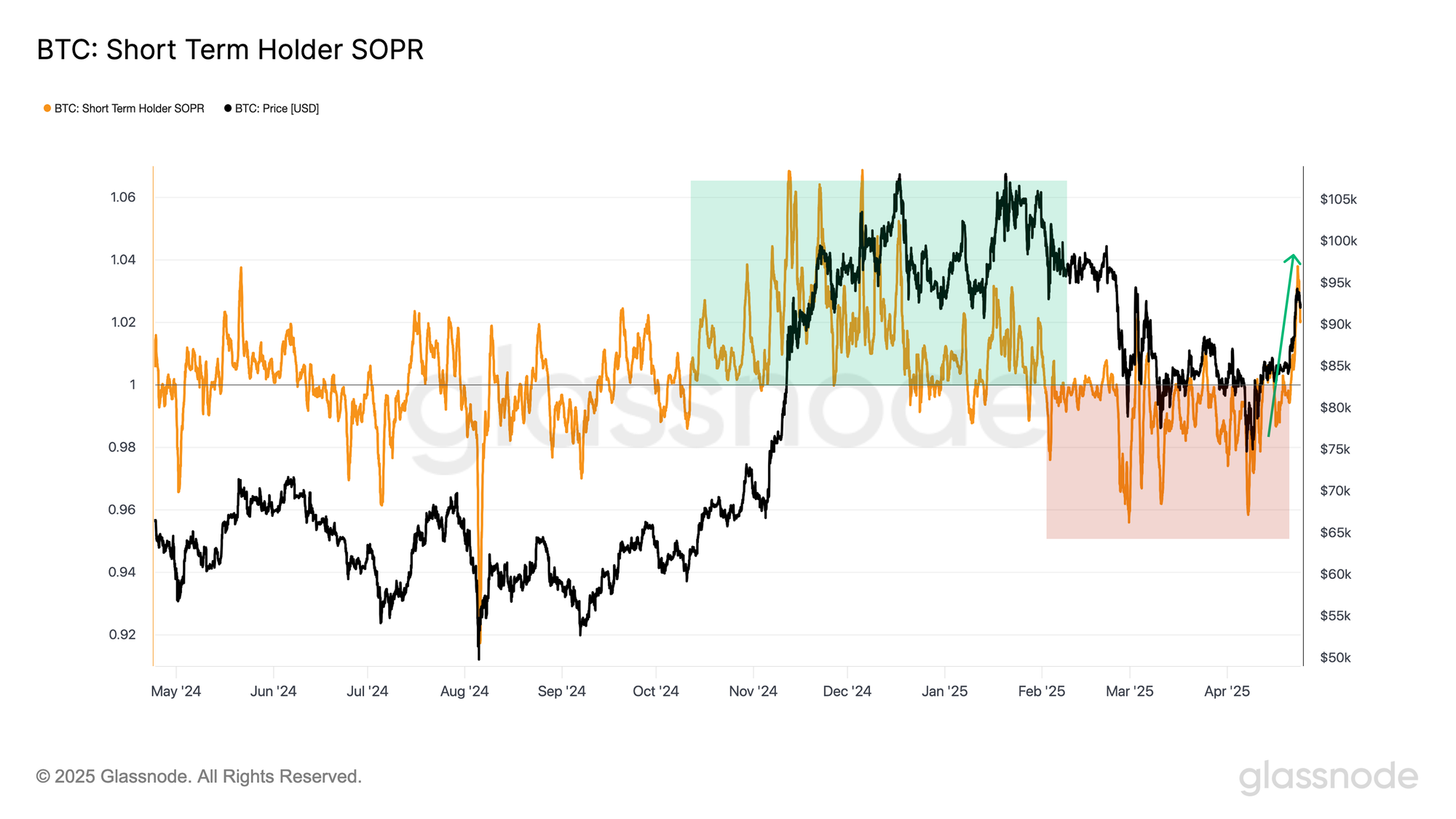 Dans le cas du BTC, cette hausse a brièvement dépassé un seuil on-chain crucial : le coût de base des investisseurs à court terme (STH), qui s'élève actuellement à 92,9 millions $.