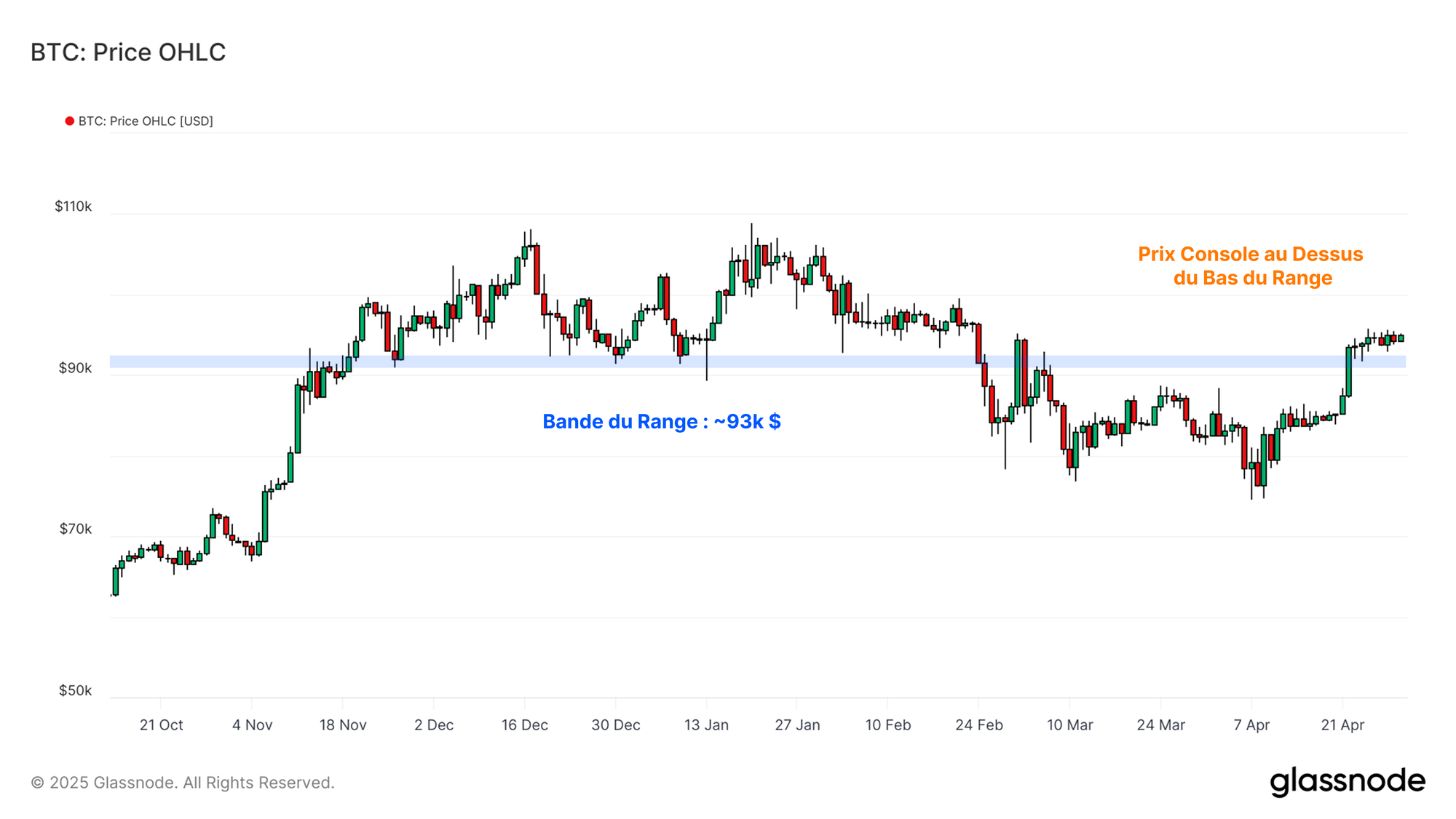 L'élan de reprise du BTC est confronté à sa première résistance significative, alors que le cours tente de consolider et de dépasser la région des 93 000 $ à 95 000 $ .