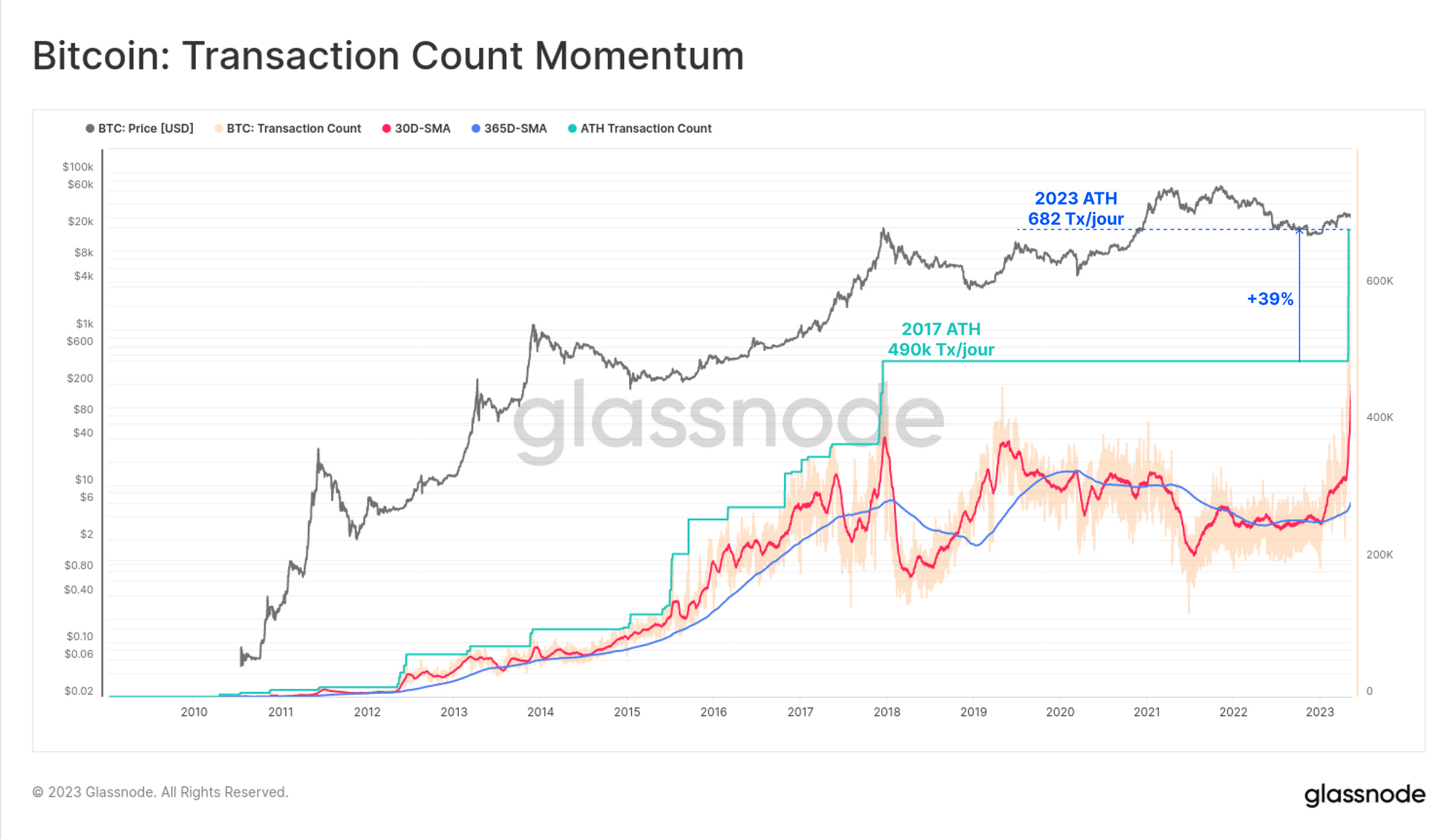 Un nouveau nombre quotidien de transactions de 682 000 a été atteint cette semaine, éclipsant le pic de 2017 d'un incroyable 39 %.