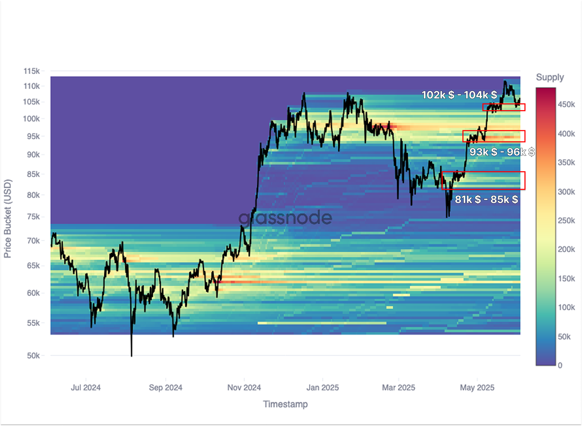 Pour comprendre les forces qui ont poussé le BTC à dépasser récemment les 111 000 $, nous devons adopter une vision plus large de la structure du marché. En examinant la carte thermique depuis le creux du cycle de juin 2022, un modèle clair de distribution des anciens acheteurs commence à émerger.