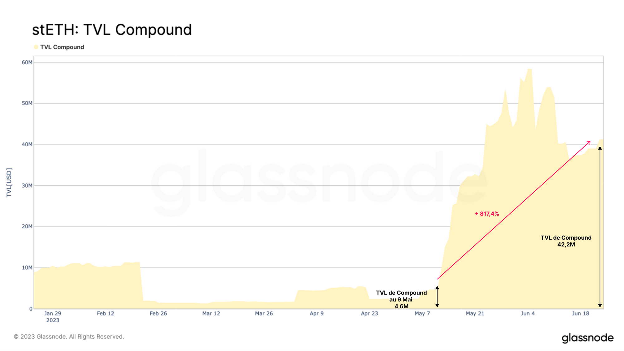 Le pool Compound V3 wstETH a également connu une croissance significative depuis son lancement en début d'année, détenant désormais plus de 42,2 millions de dollars de stETH.