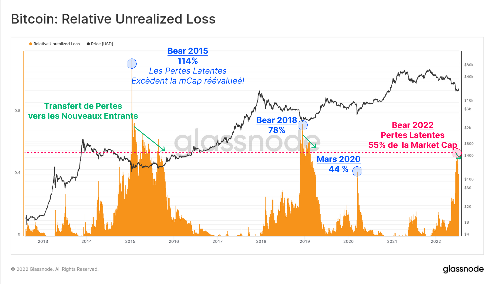 Les mois de mai et juin 2022 ont connu deux événements de ce type, lors de l'effondrement de LUNA, et lorsque les prix ont plongé en dessous de l'ATH du cycle 2017 le 18 juin.