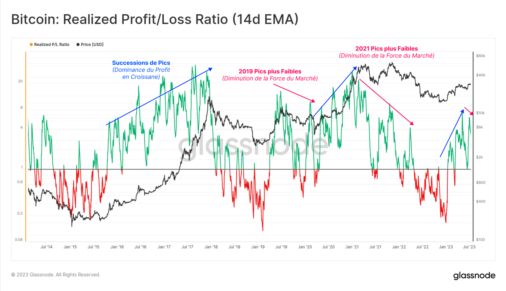 Si l'on prend le ratio entre les pertes et les profits totaux réalisés, on constate que 2023 a été une année explosive et positive jusqu'à présent, dépassant fermement le seuil de rentabilité de 1,0 au début du mois de janvier.