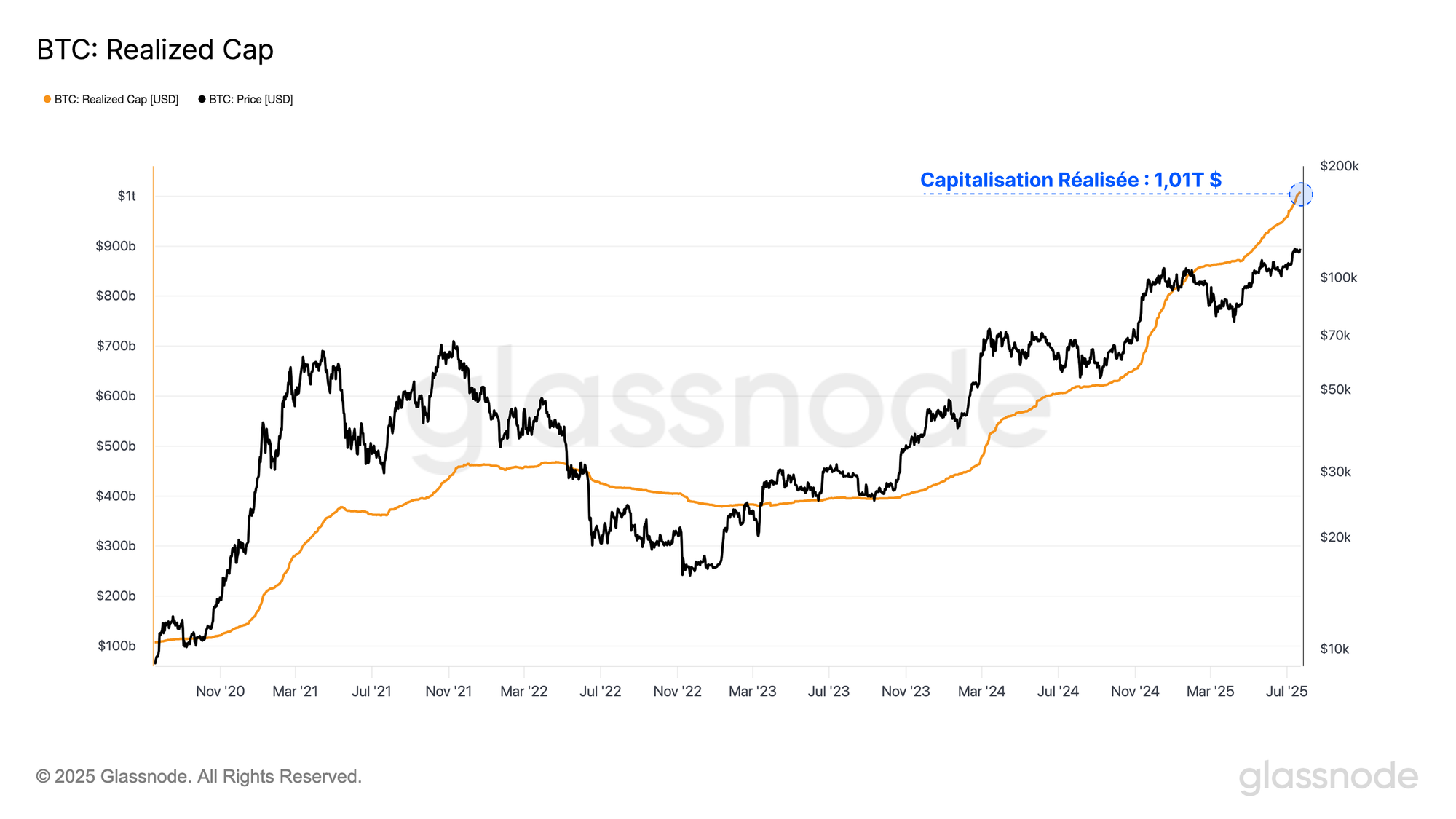 Ce récent afflux de capitaux a permis à la capitalisation réalisée du BTC de dépasser pour la première fois la barre des 1 000 milliards de dollars.