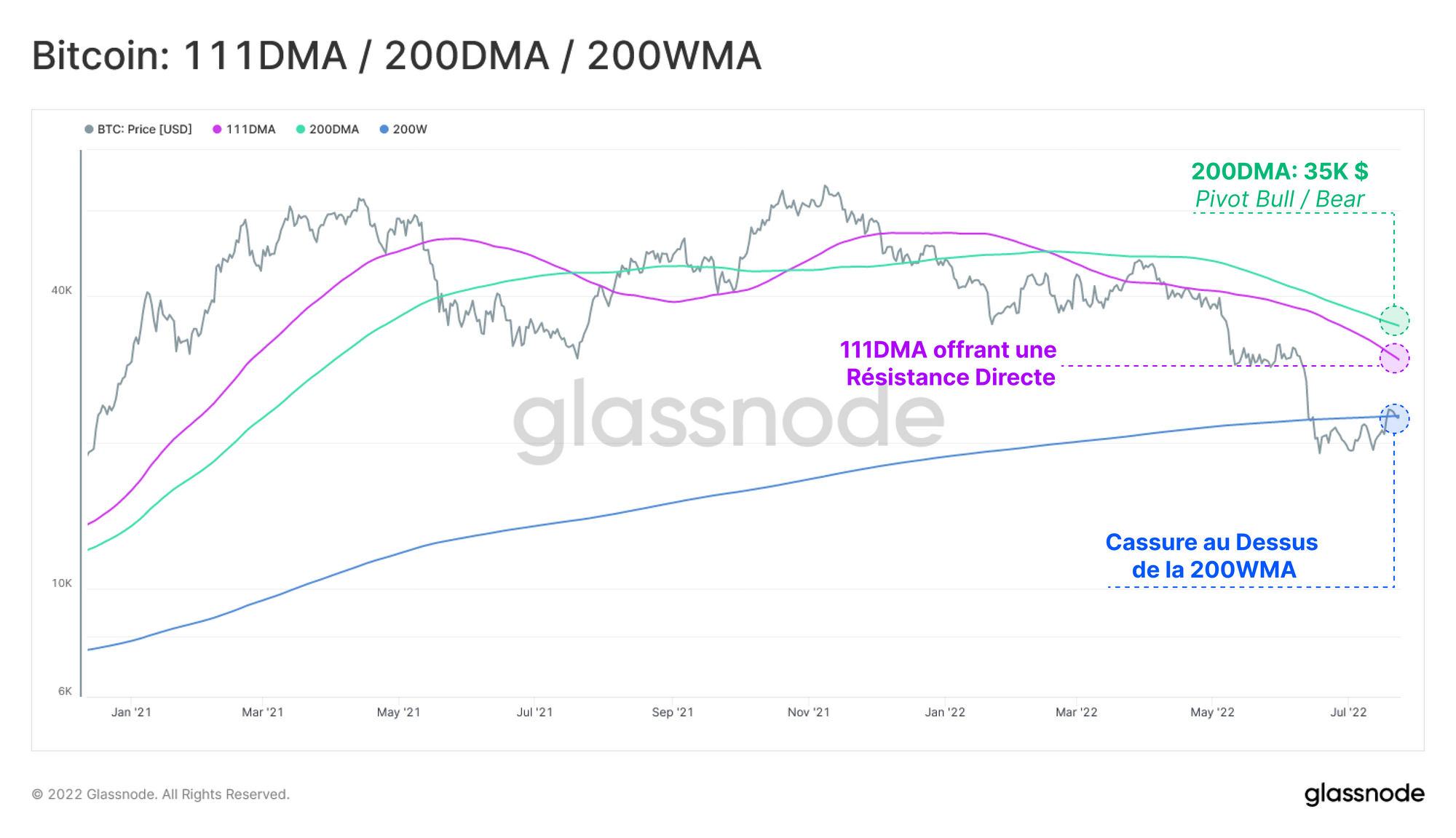 - La 111DMA est un composant de l'indicateur Pi Cycle Top et se trouve actuellement à 30K$, s'alignant avec un niveau de prix psychologique et avec les amas d'offre détaillées plus haut.