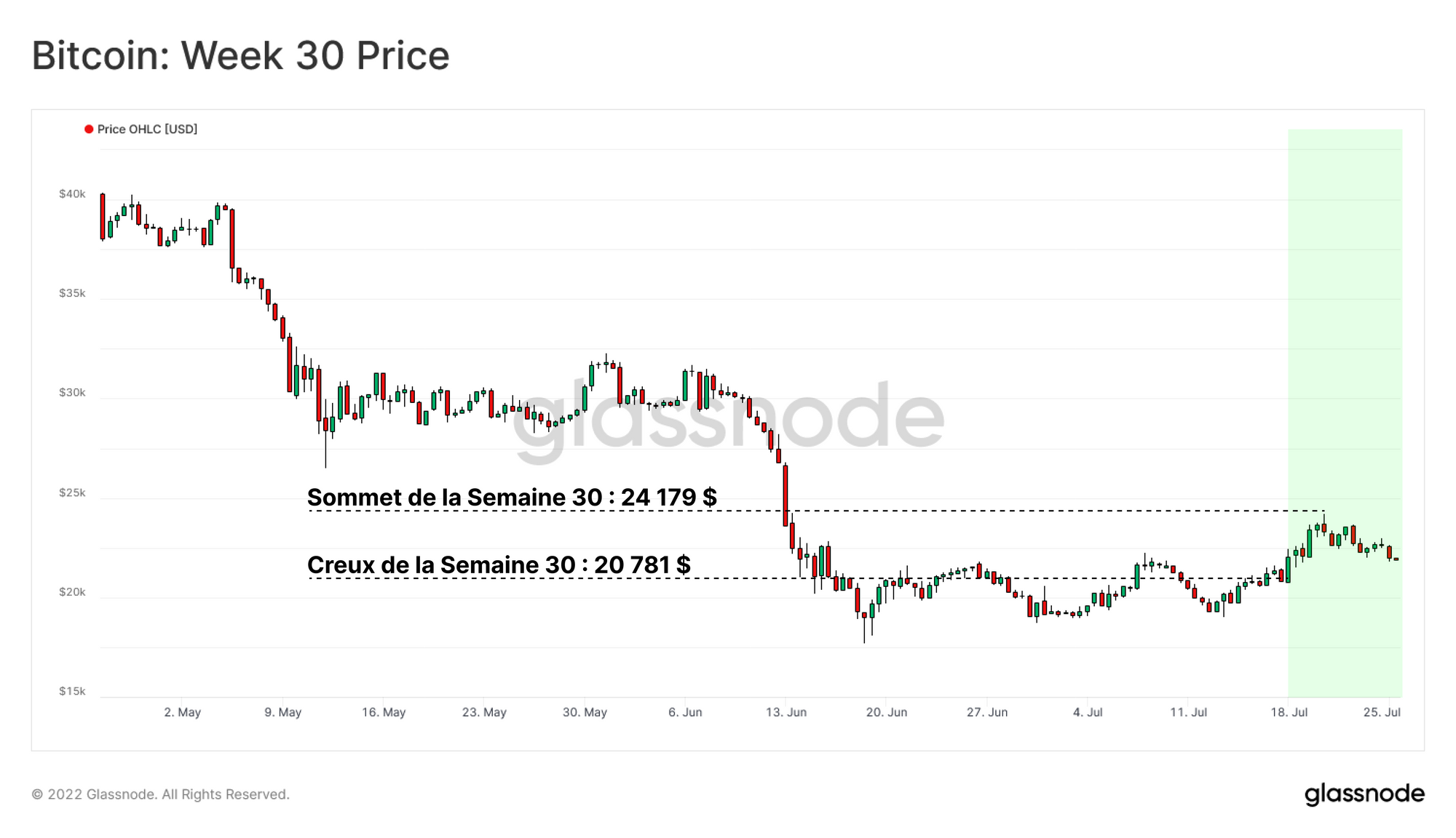 Après un mois de consolidation dans la zone des 20k $, les prix du bitcoin ont connu une hausse bienvenue, clôturant 9% au-dessus de l'ouverture hebdomadaire. L'action des prix a débuté à 20 781 $, s'est ralliée à un sommet de 24 179 $, avant de se replier vers les sommets de la zone de consolidation au cours du week-end.