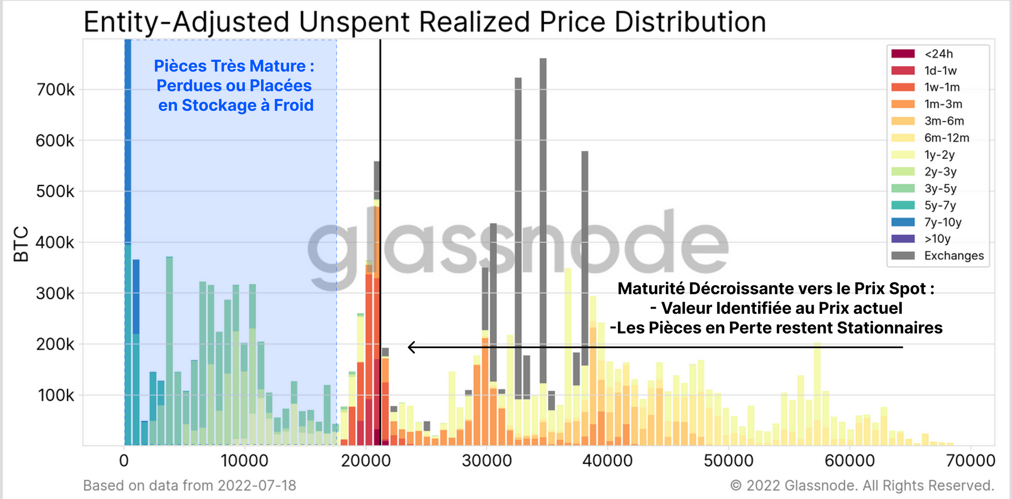 Nous pouvons en déduire que les investisseurs à long terme possédant des pièces plus anciennes ont accéléré les dépenses de leur UTXOs matures lorsque les prix ont atteint leur niveau le plus bas.