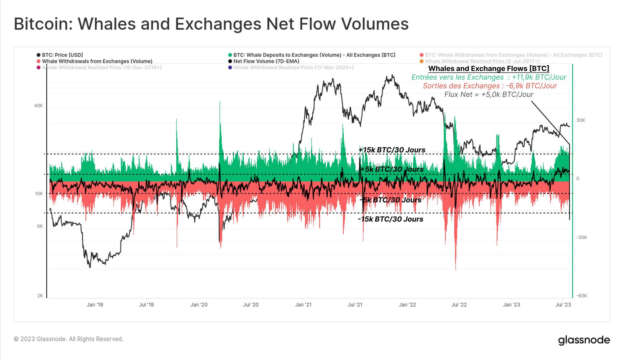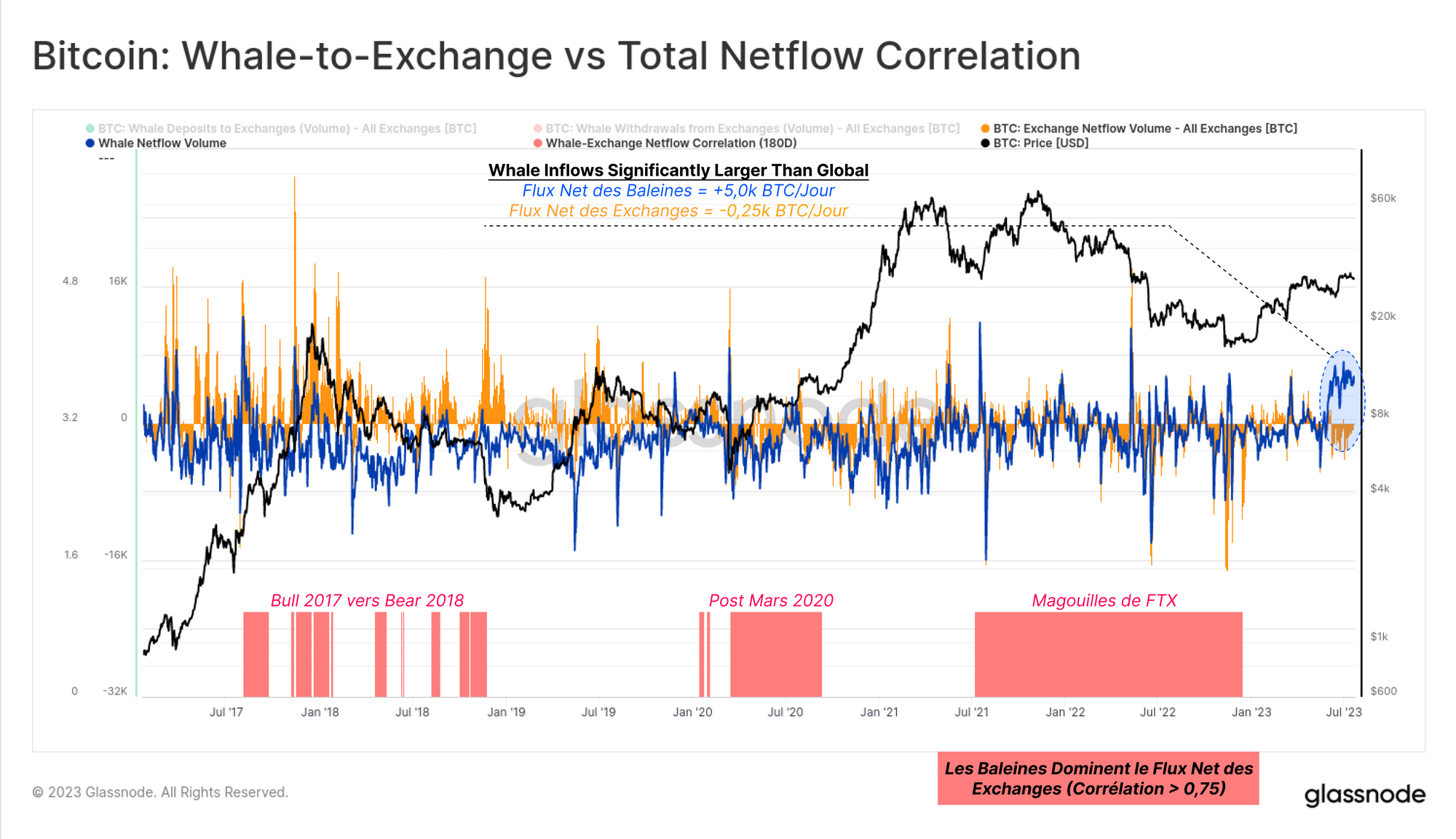 L'analyse du flux net des baleines vers les exchanges peut être utilisée comme indicateur de leur influence sur l'équilibre entre l'offre et la demande.