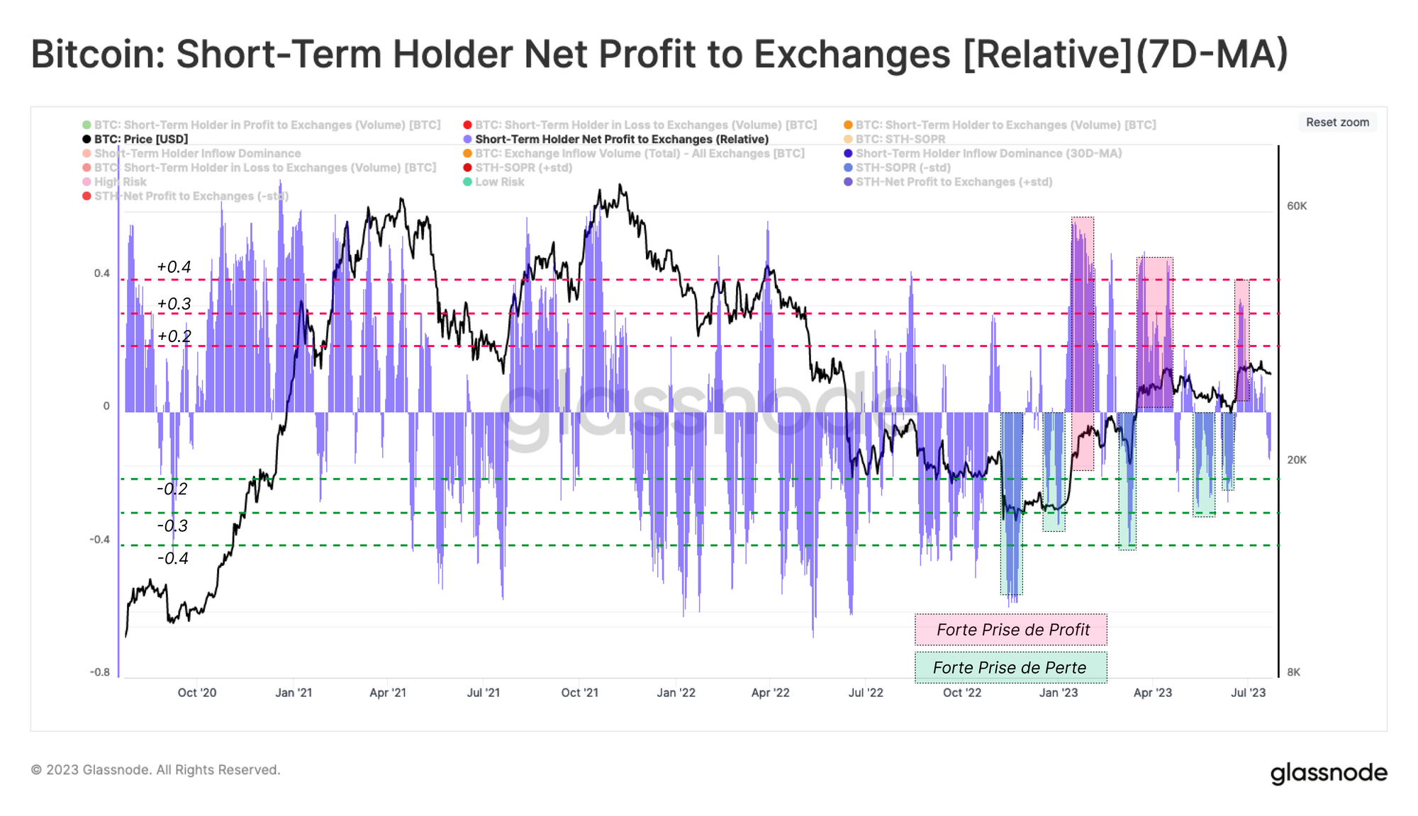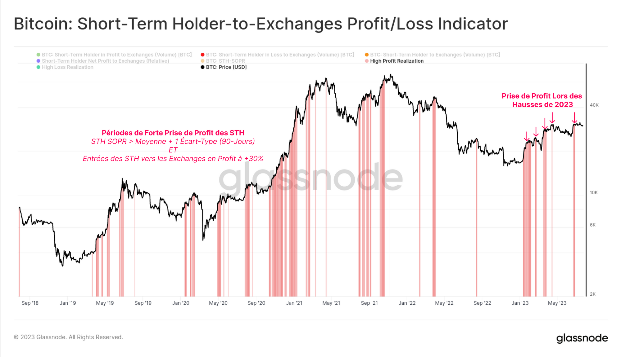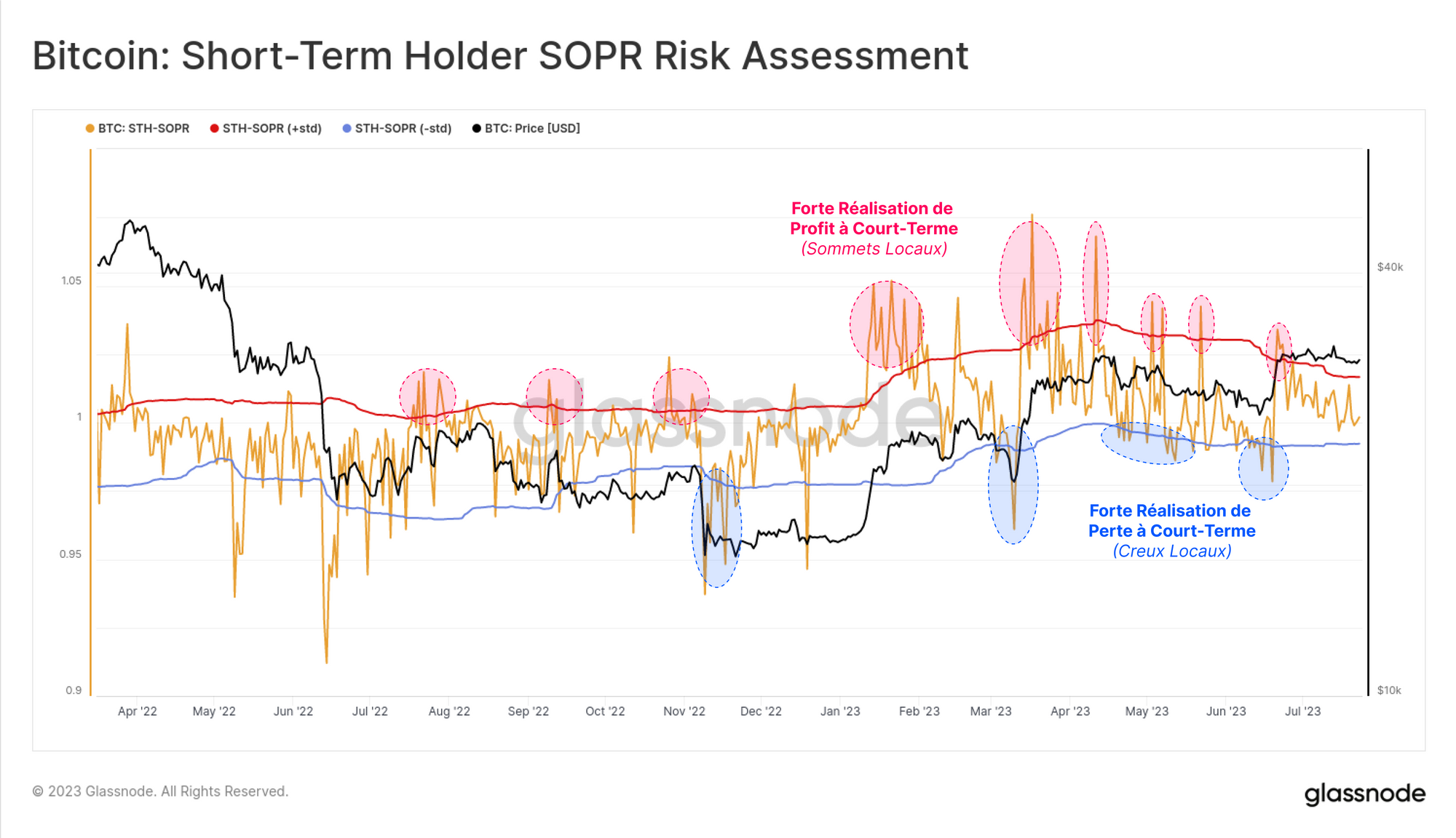 - Un STH-SOPR se situant au-dessus de la bande moyenne + 1 écart-type.