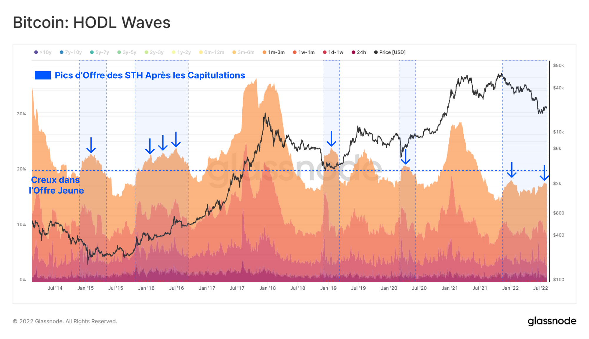 Au contraire, l'offre de STH continue de s'étendre suite à une capitulation du prix conduisant à une augmentation de l'offre de +330k BTC.