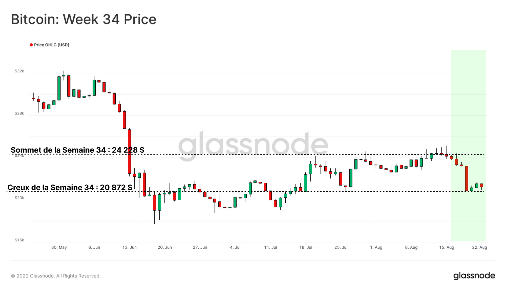 Cependant, la faiblesse de l'activité on-chain couverte par le Semaine 31 s'est manifestée par une vente cette semaine, les prix tombant une fois de plus sous ce niveau clé.