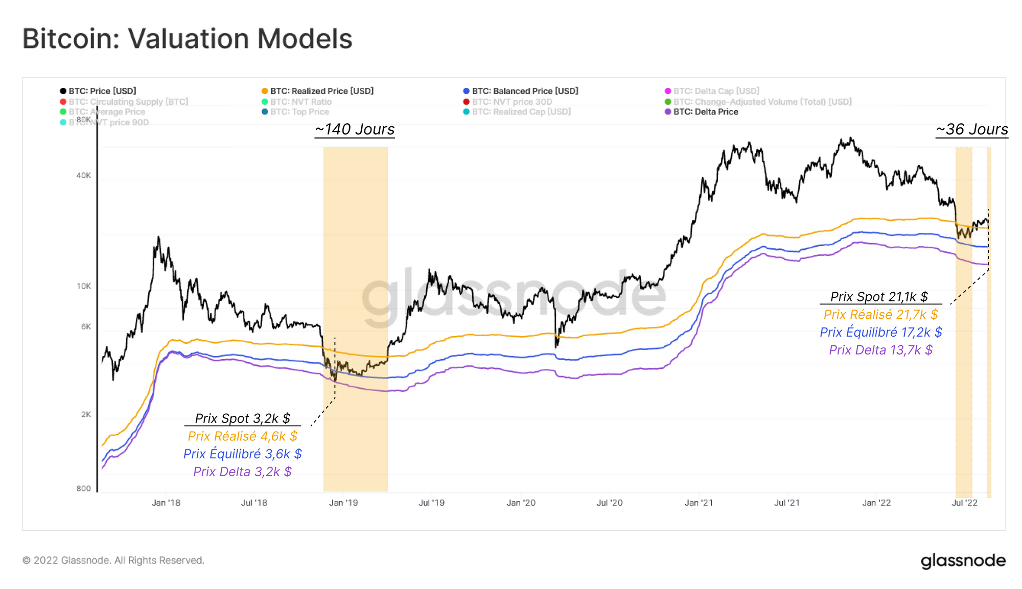 Le prix réalisé se négocie actuellement à 21,7k $, tandis que les prix spot sont légèrement inférieurs au prix réalisé, aux alentours de 21,3k $.