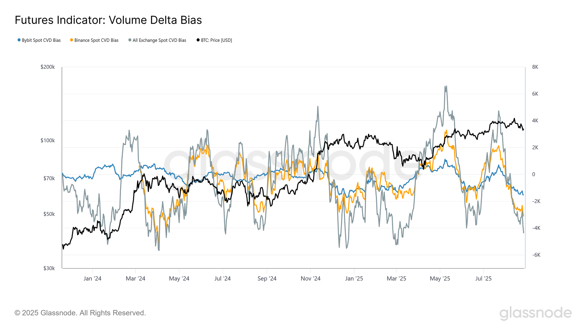 De juillet, le CVD sur Binance, Bybit et les exchanges futures dans leur ensemble est passé en territoire négatif, ce qui indique un déséquilibre croissant en faveur de la pression de vente.