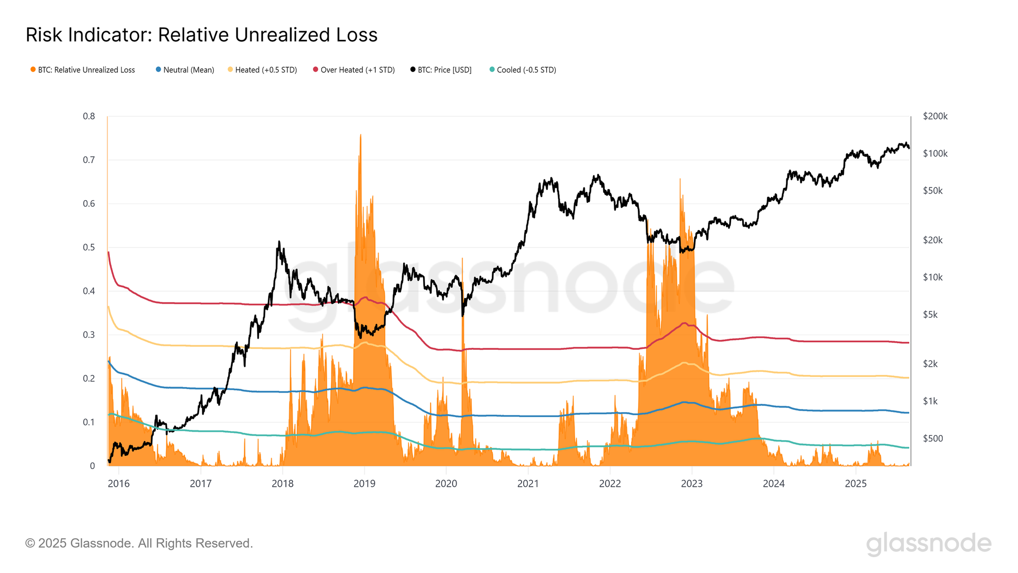 À l'heure actuelle, alors que le BTC s'échange à près de 111 000 dollars, cette métrique n'est que de 0,5 %, ce qui est nettement inférieur aux niveaux de perte généralement associés aux phases baissières profondes (>30 %).