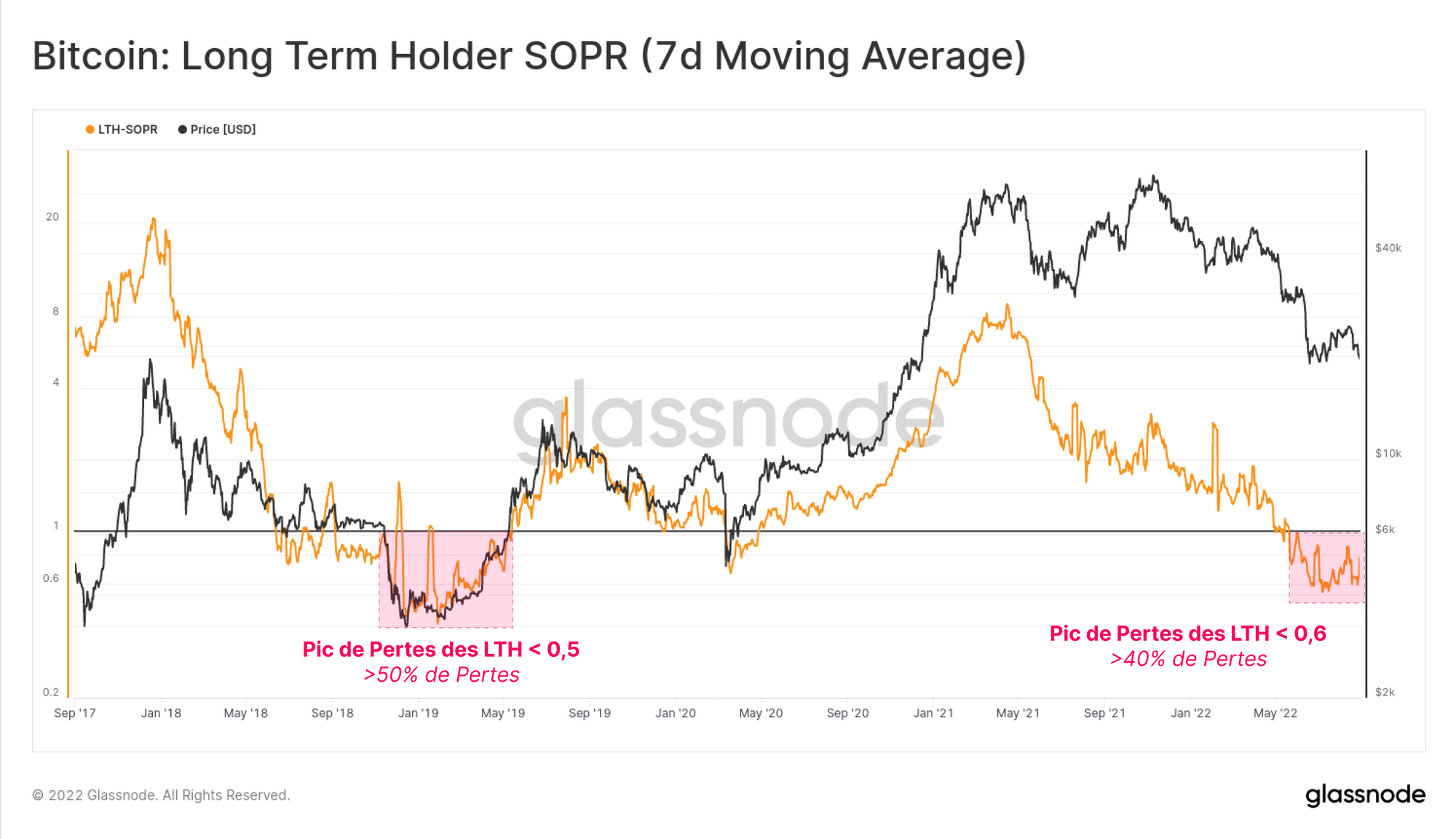 Les détenteurs de bitcoins à long terme ressentent également les effets de la crise, les valeurs LTH-SOPR se négociant autour de 0,60 à 0,65 pendant plusieurs semaines consécutives.