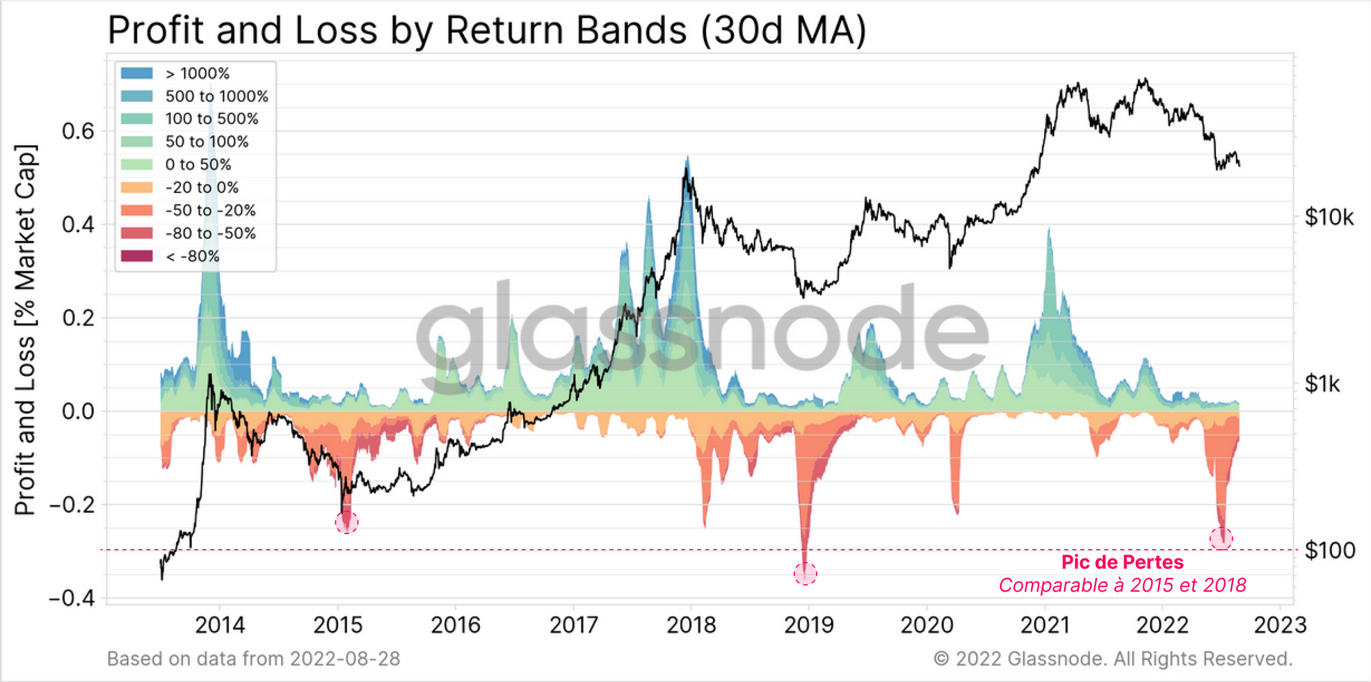 Surpassée seulement par la capitulation de 2018, l'ampleur relative des pertes des investisseurs au cours des dernières semaines est énorme, atteignant 0,28 % de la Market Cap par jour.