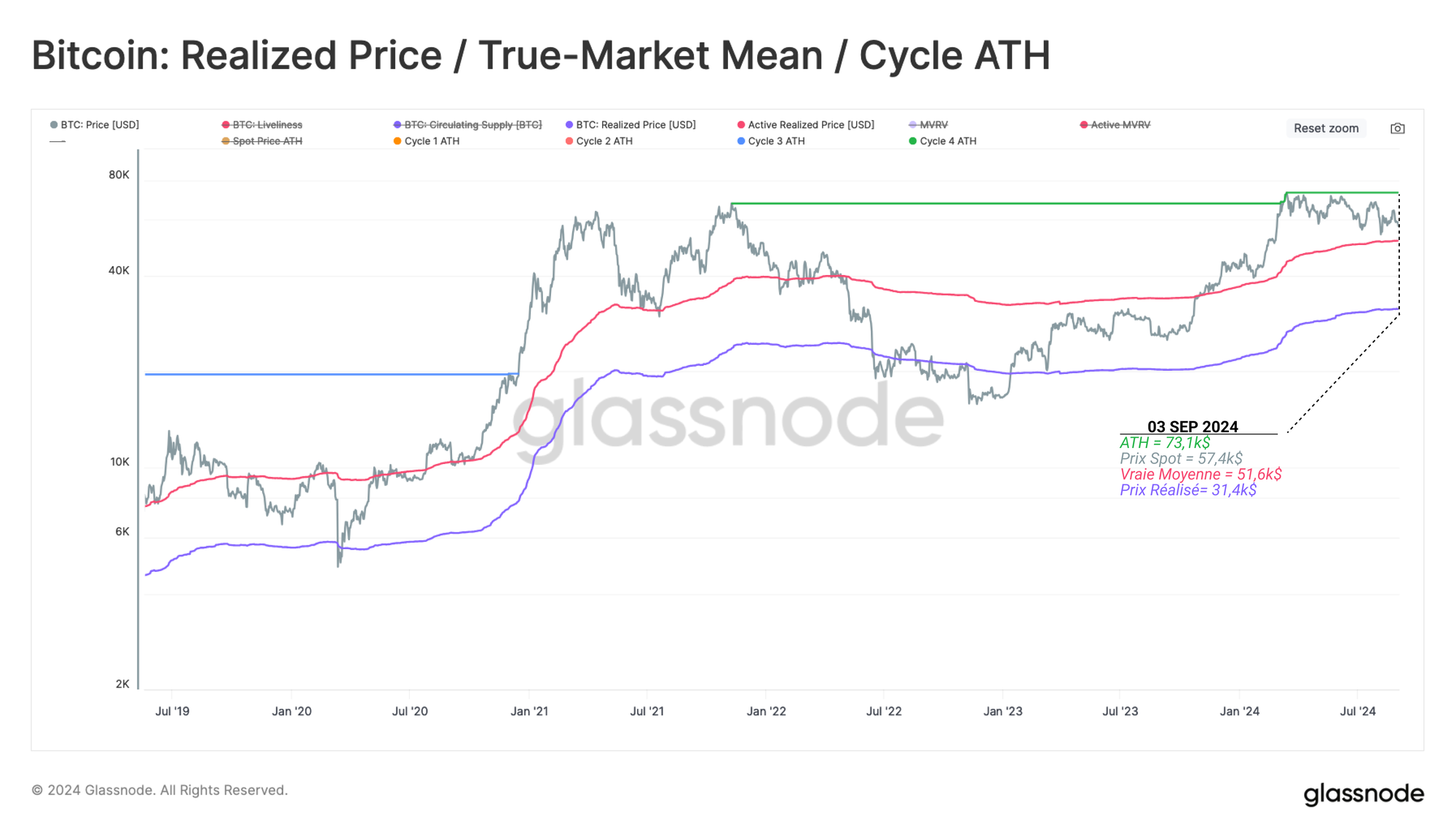 - En moyenne, les investisseurs détiennent des pertes latentes relativement faibles par rapport aux cycles précédents, ce qui suggère une position globale relativement favorable.