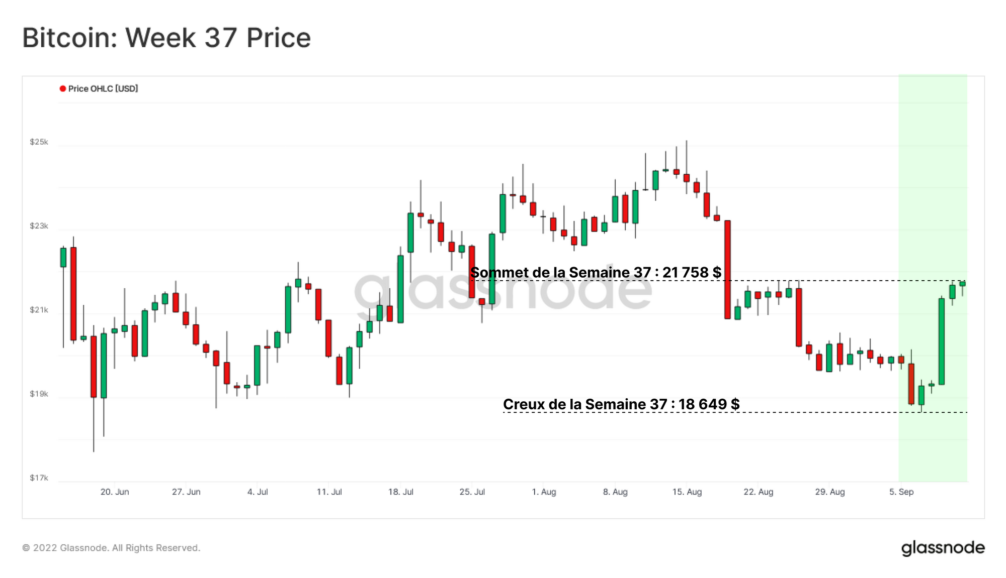 Le prix du bitcoin a connu une puissante reprise, rebondissant sur le deuxième plus bas niveau (18 649 $) du marché baissier actuel. Les prix ont atteint un sommet à 21 758 $, mais restent fermement ancrés dans la fourchette de consolidation établie depuis plus de trois mois.