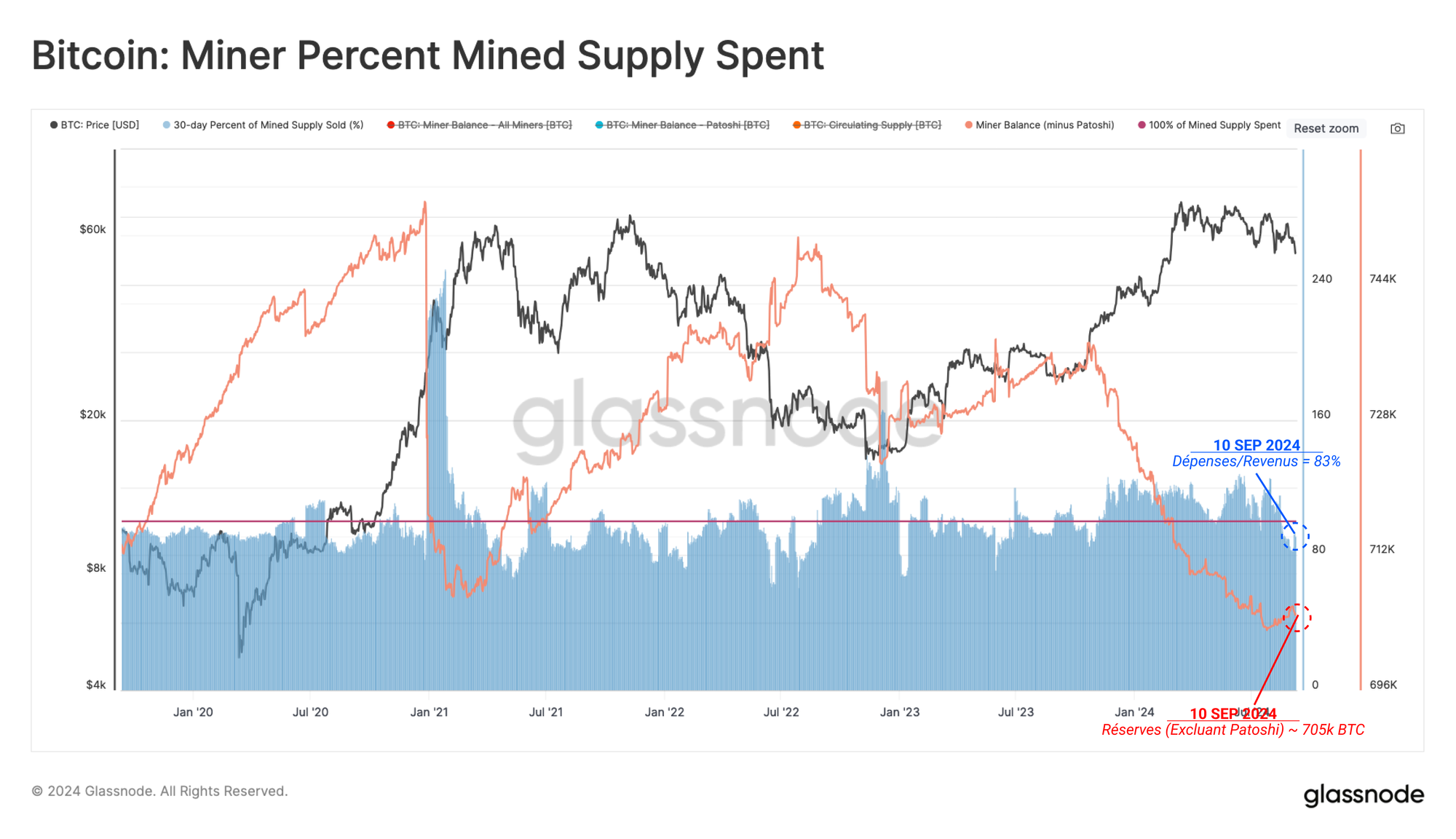 En raison de la nature compétitive du secteur minière, les mineurs ont historiquement eu besoin de céder une majorité des BTC minées pour couvrir leurs coûts d'opérations.