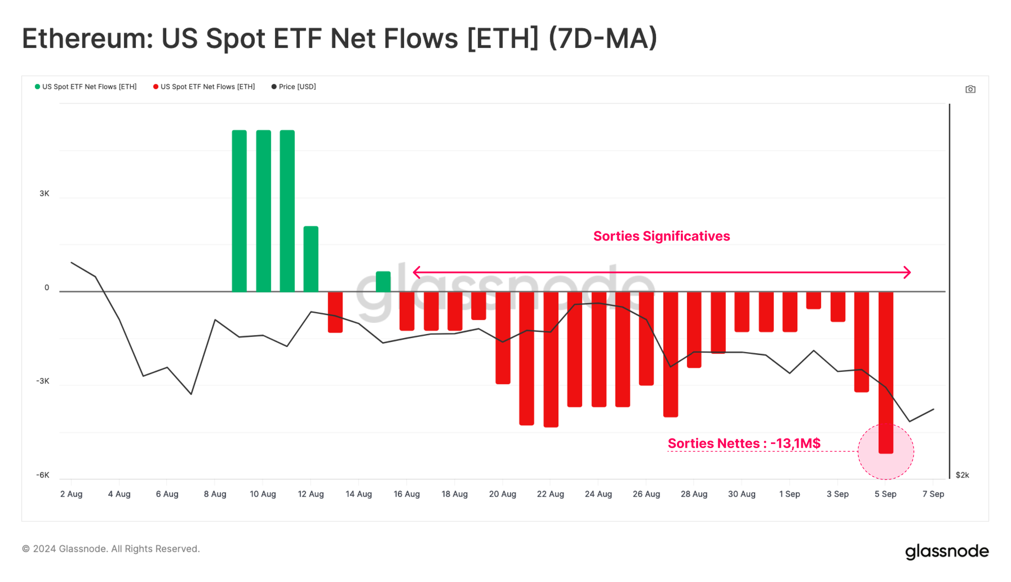 Cette situation s'explique principalement par les rachats du produit Grayscale ETHE, qui n'ont pas été contrebalancés par une demande suffisante de la part des autres instruments.