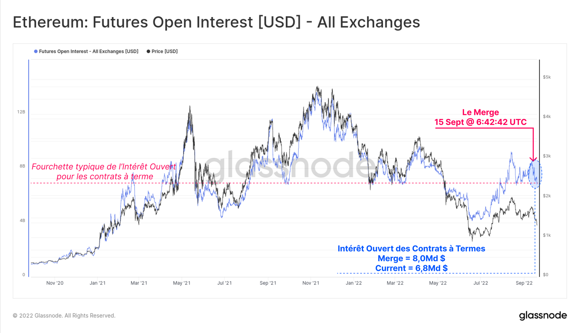 Cependant, pour garder ce changement dans le contexte, nous devons tenir compte de l'influence de l'évolution du prix de l'ETH, qui affecte la valeur en USD de la taille des positions à terme libellées en ETH.