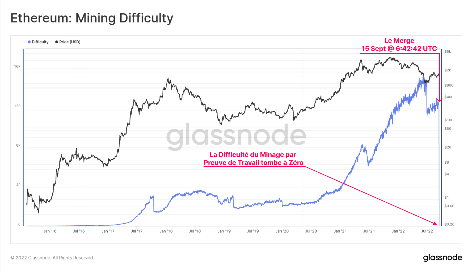 La fin de l'ère de la preuve de travail sur Ethereum a été marquée par une baisse immédiate de la difficulté de minage jusqu'à zéro après le Merge. Ce processus a été instantané, sans période de ralentissement, ni ajustement de la difficulté. Les revenus des mineurs PoW se sont effectivement évaporés, laissant une flotte de GPU et d'ASIC à la recherche d'un nouvel objectif.