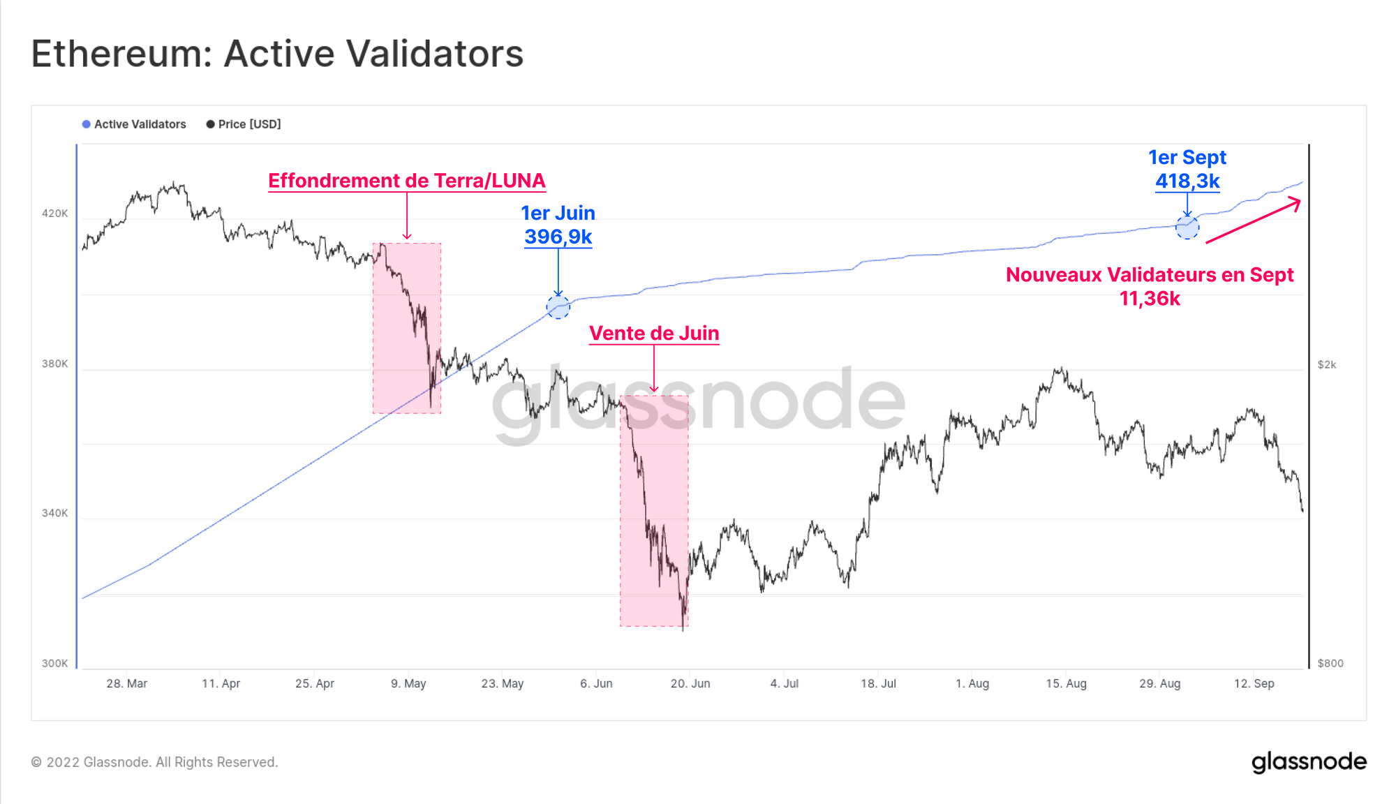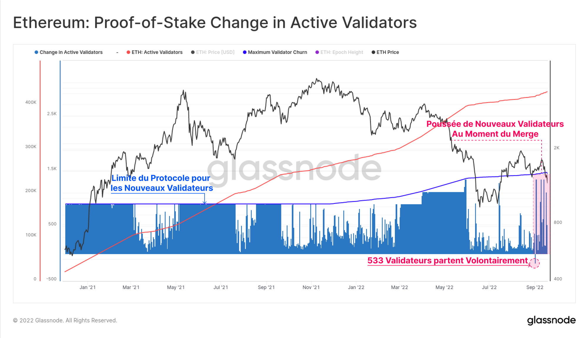 La récente explosion de l'activité des nouveaux validateurs en septembre est visible, bien qu'elle reste assez légère par rapport aux périodes plus importantes observées en 2021.
