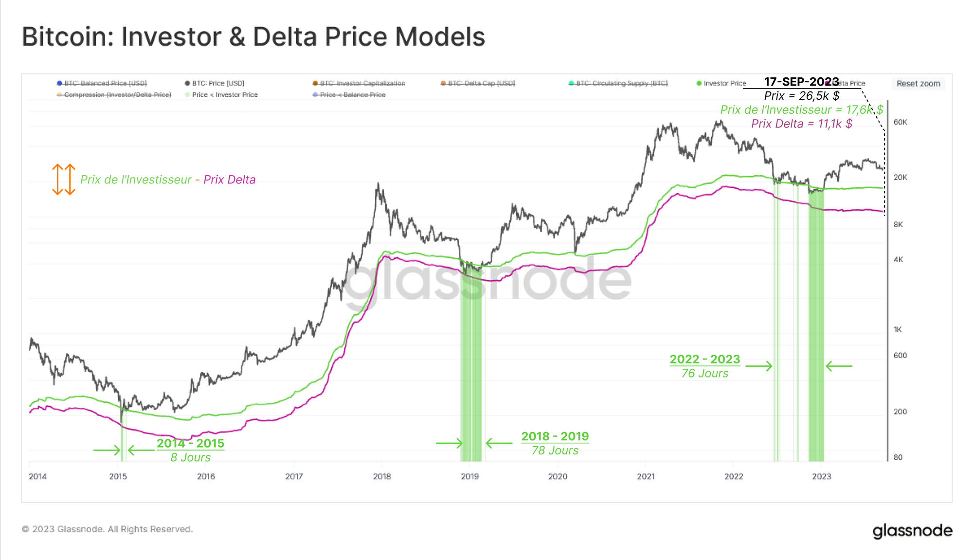 - 🟢 Prix de l'investisseur (17,6 k$), qui reflète le prix d'acquisition moyen de toutes les pièces, à l'exclusion de celles des mineurs (c'est-à-dire sur les marchés secondaires).