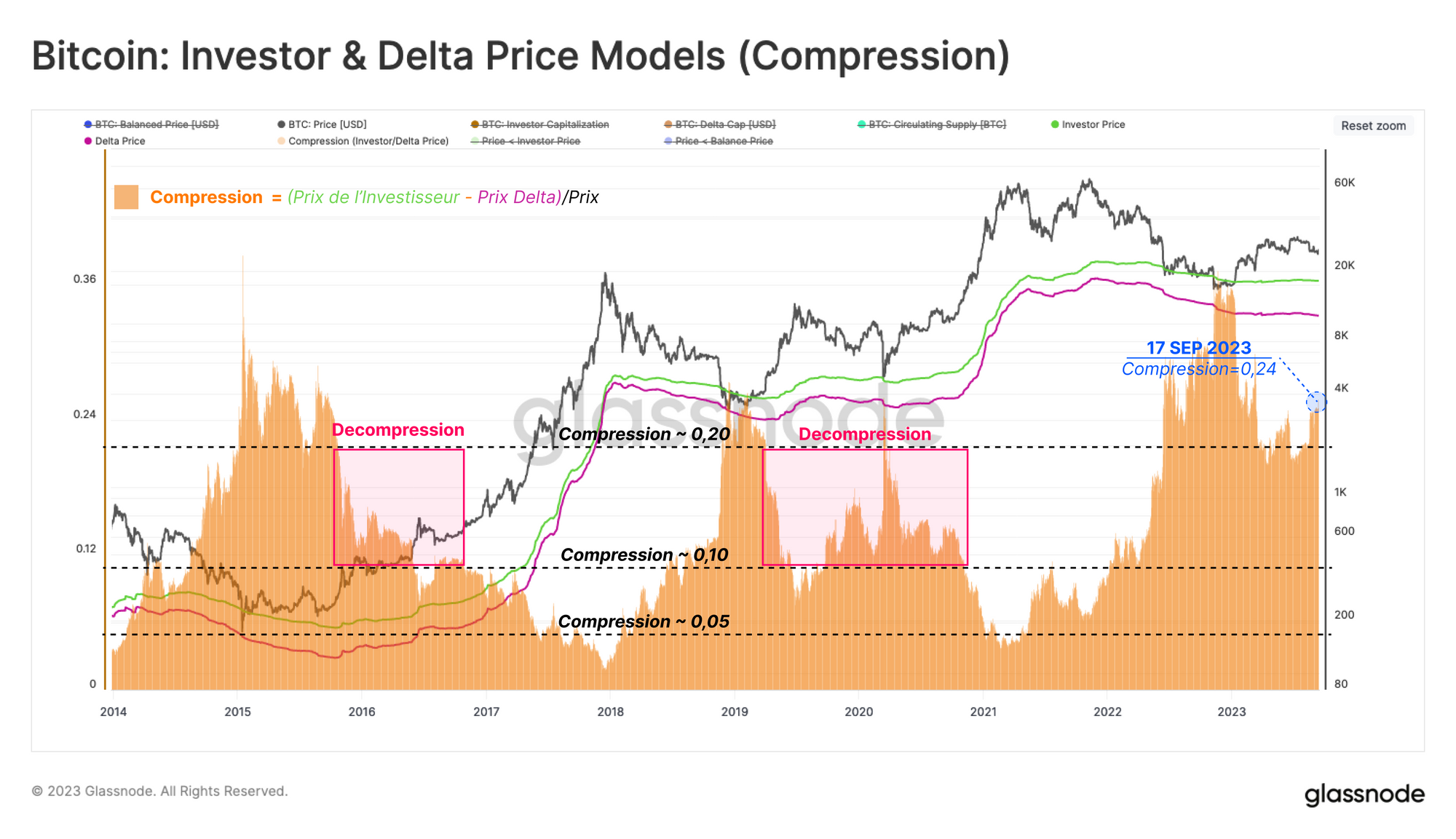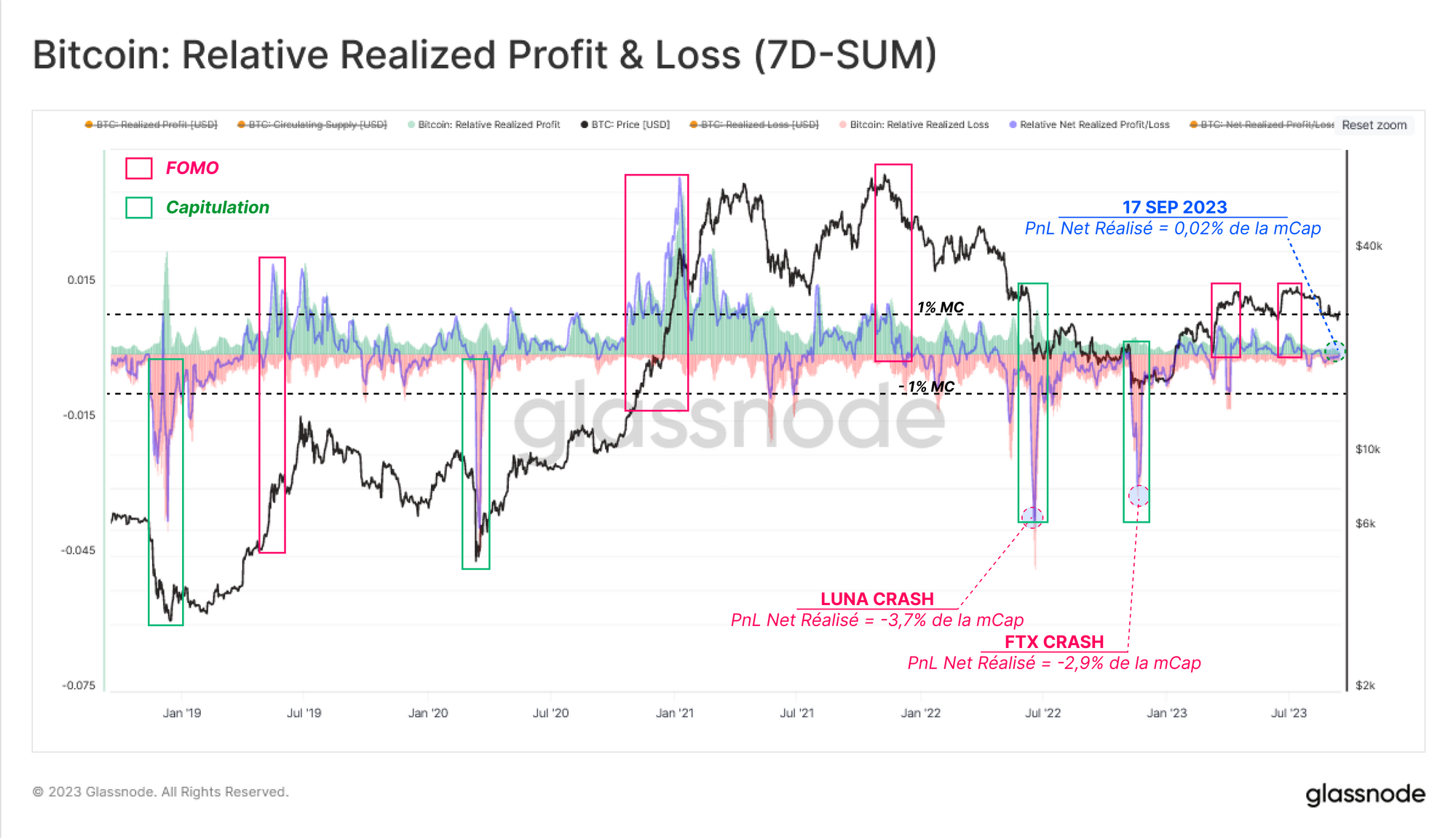 Si la tendance commence à remonter vers le territoire transitoire puis positif (> -0,05), cela indiquerait que les capitaux commencent à revenir sur le marché et que les détenteurs se trouvent à nouveau dans une position plus favorable.