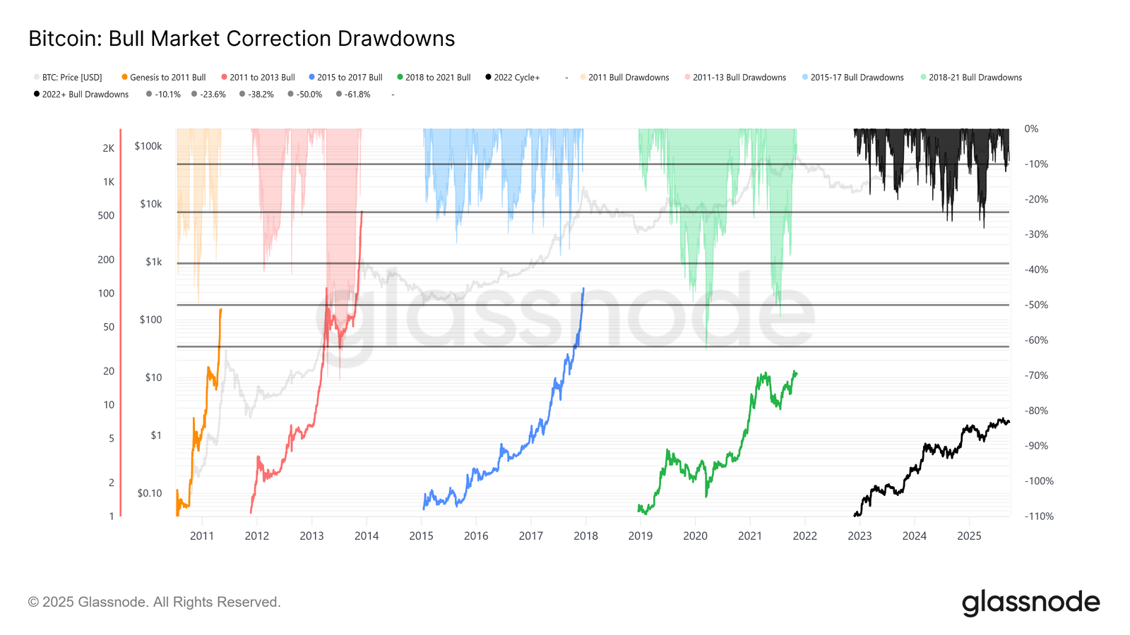 Sur cette base, la baisse actuelle de 124 000 $ à 113 700 $ n'est que de 8 %, ce qui est modéré par rapport à la baisse de 28 % du cycle ou aux baisses de 60 % des cycles précédents.