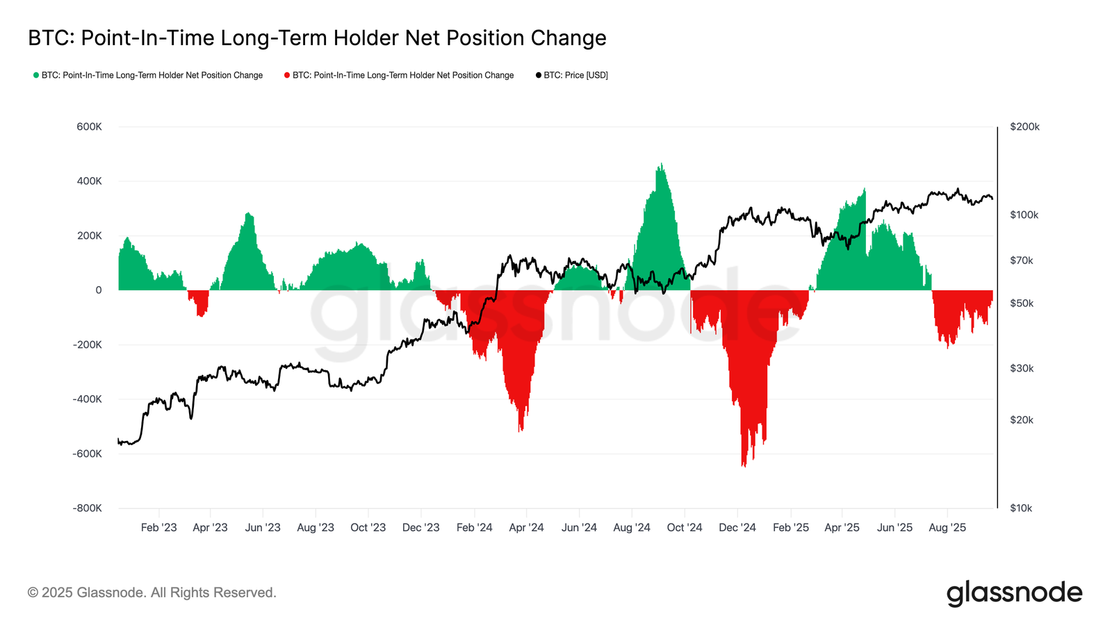 Au moment de la réunion du FOMC, les distributions des investisseurs à long terme ont bondi à 122 000 BTC/mois, tandis que les flux nets des ETF se sont effondrés, passant de 2 600 BTC/jour à près de zéro.